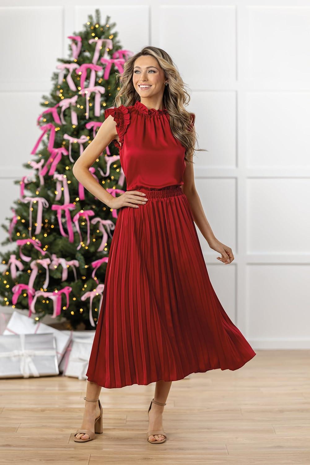Mud Pie Women’s Townes Pleated Skirt(Red)