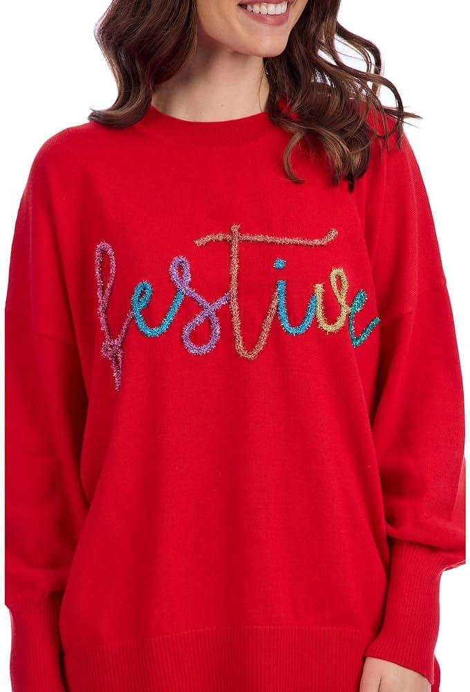 Mud Pie Women’s Holiday Sparkle Sweater(Red)