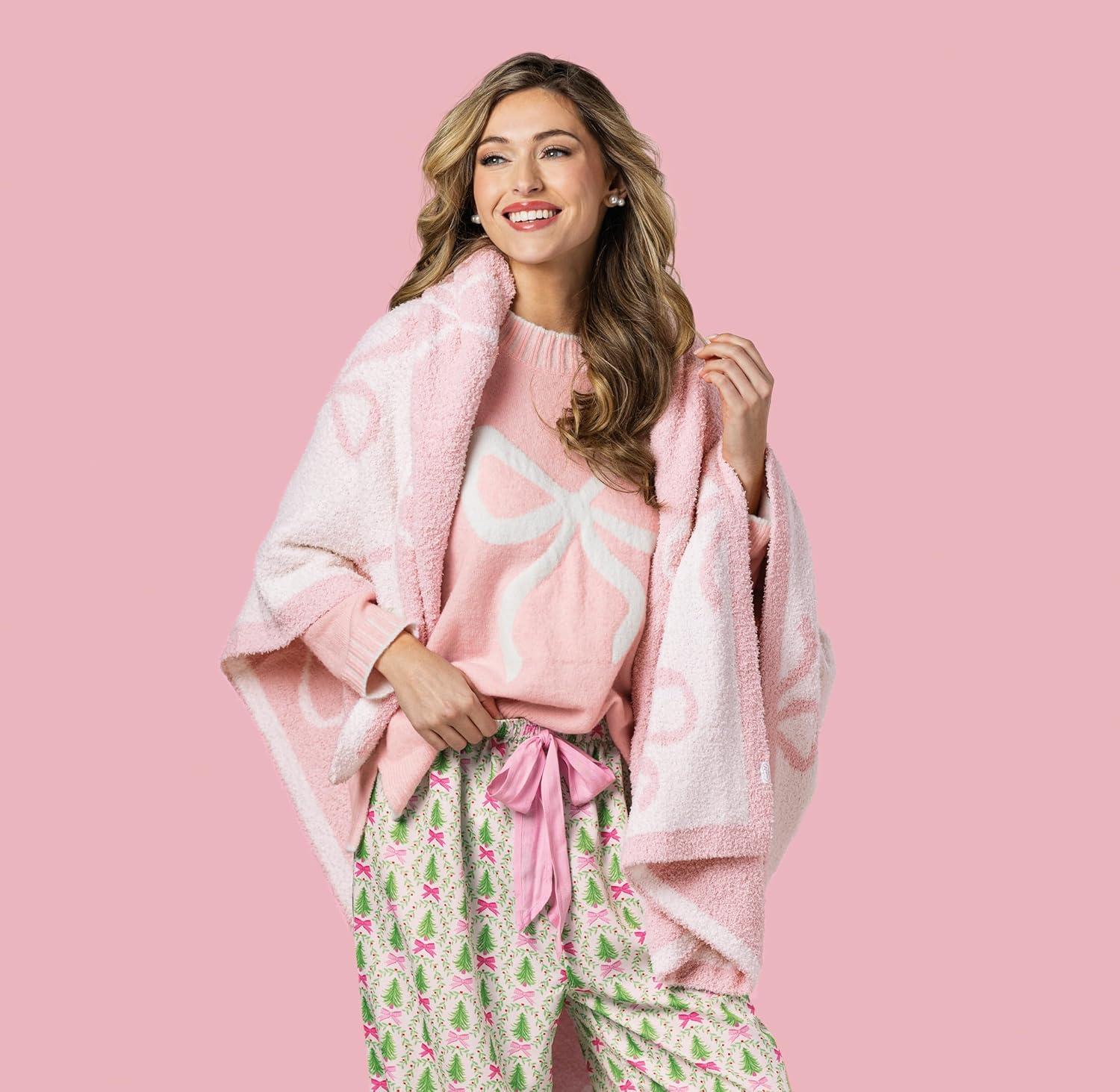 Mud Pie Women’s Valentine Bows Chenille Blanket