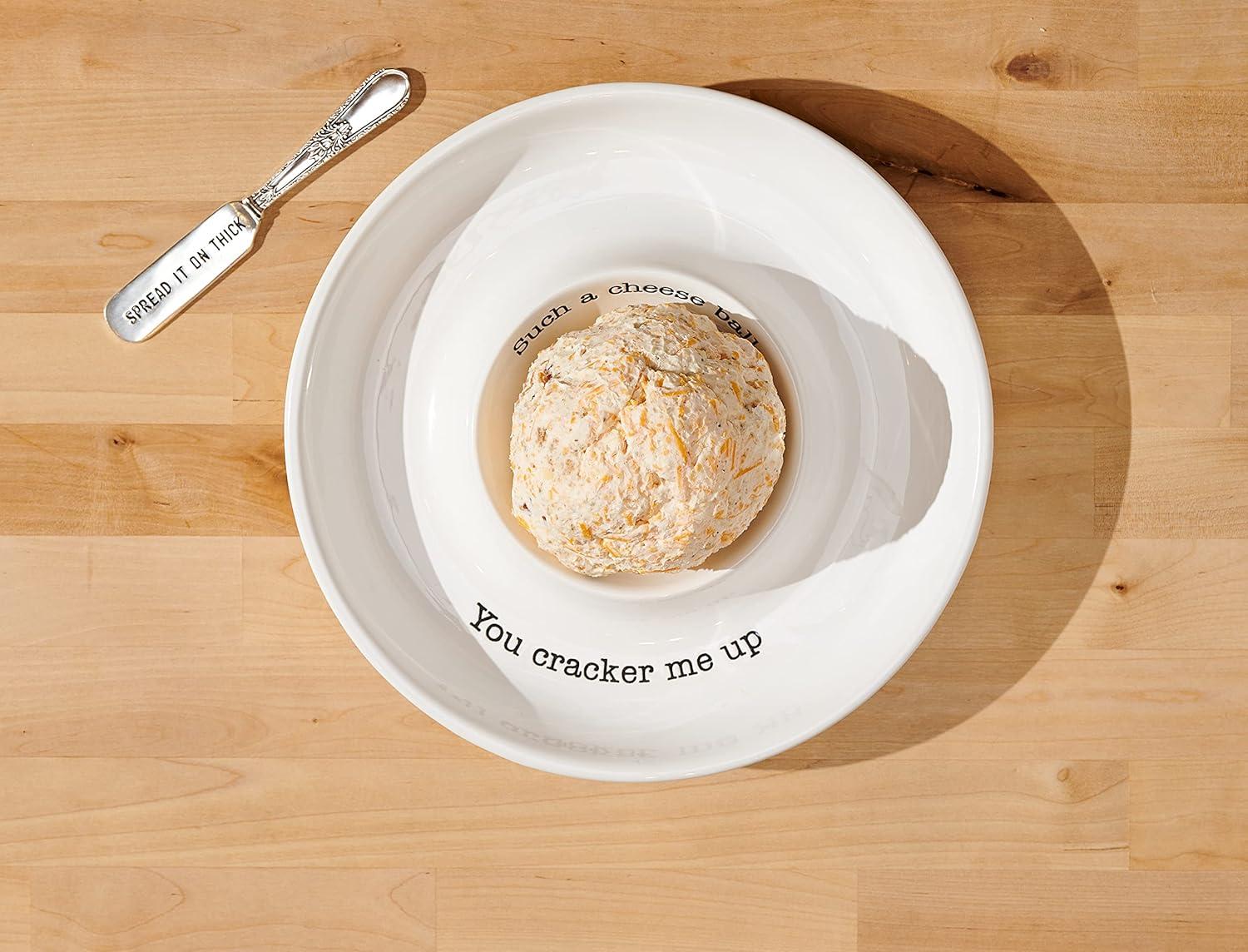 Mud Pie Circa Cheese Ball Dish Set,White, dish 1 1/2″ x 9 1/2″ dia | spreader 5 1/2″(dish 1 1/2″ x 9 1/2″ dia | spreader 5 1/2″)