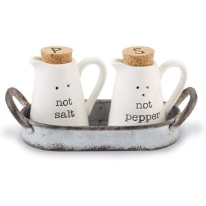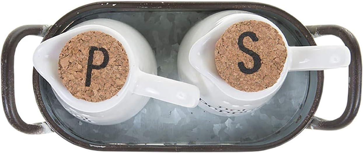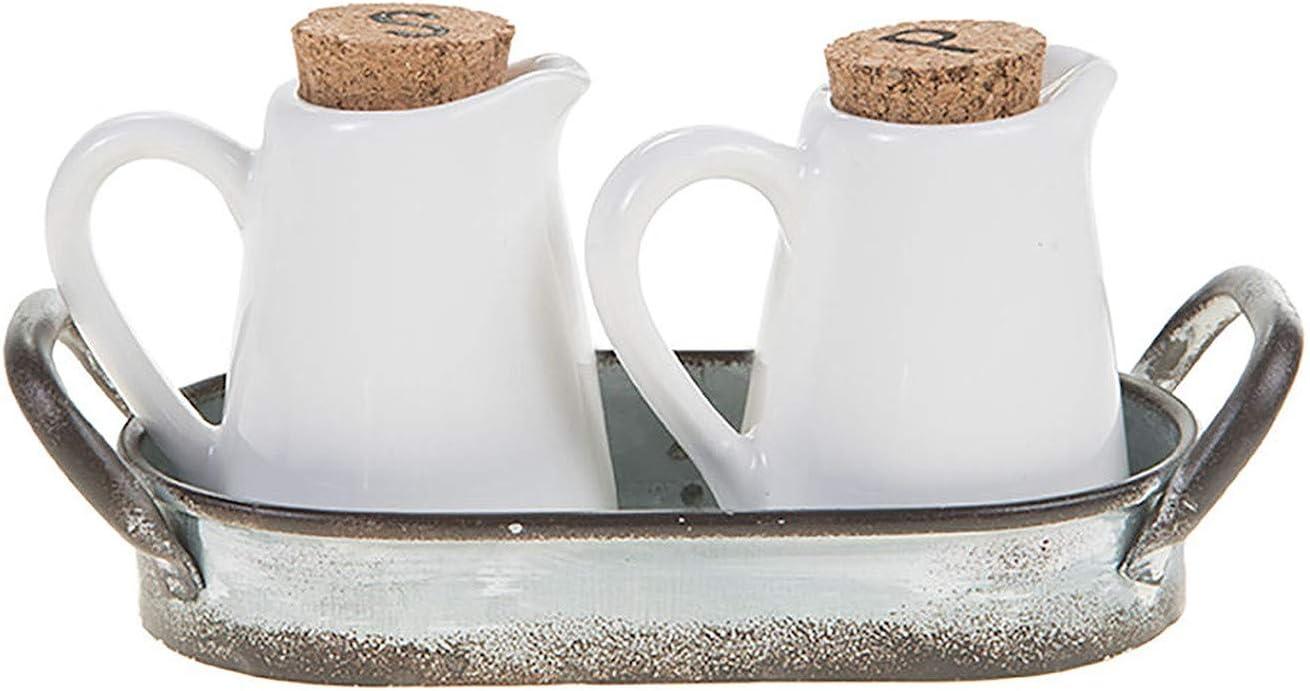 Farmhouse Inspired Ceramic Aluminum Salt and Pepper Caddy Set, White