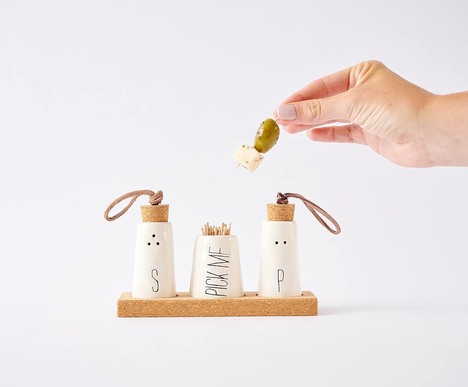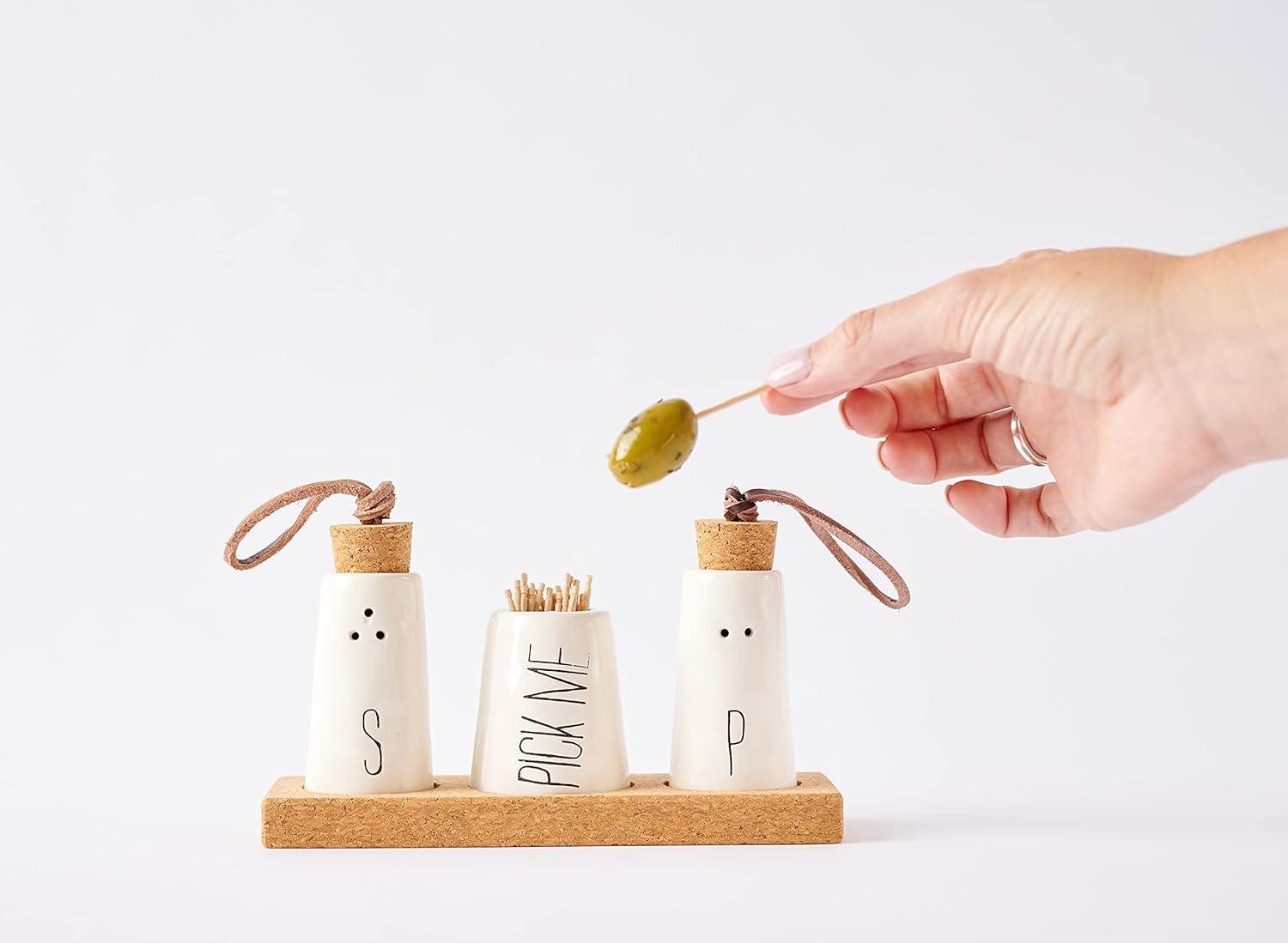 Mud Pie, Off-White Salt, Pepper & Toothpick Holder, Size: tray 2″ x 6″ | shakers 2 3/4″ x 1 1/2″ dia