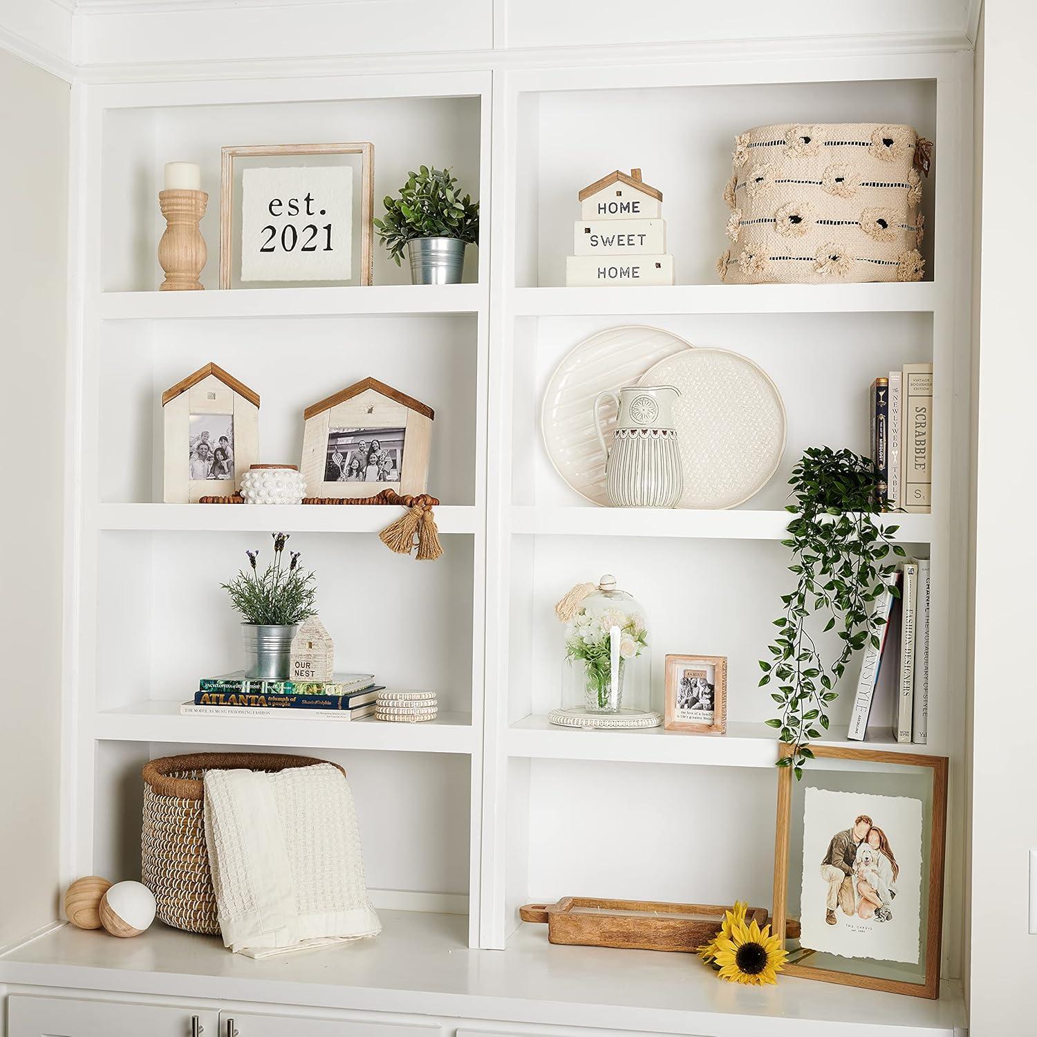 Mud Pie Wood Beaded Lantern Set, Distressed White WASH(Brown/Natural)