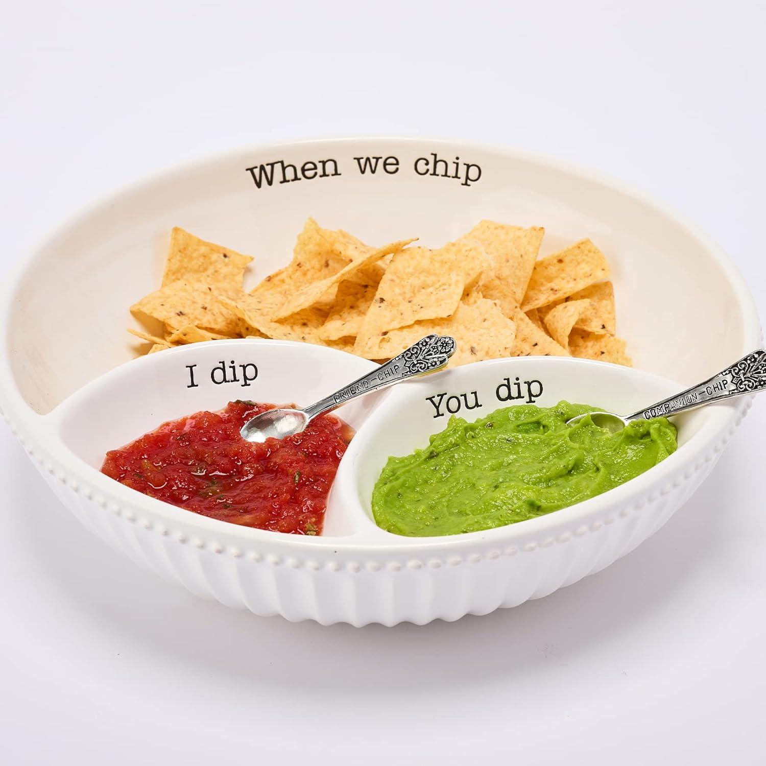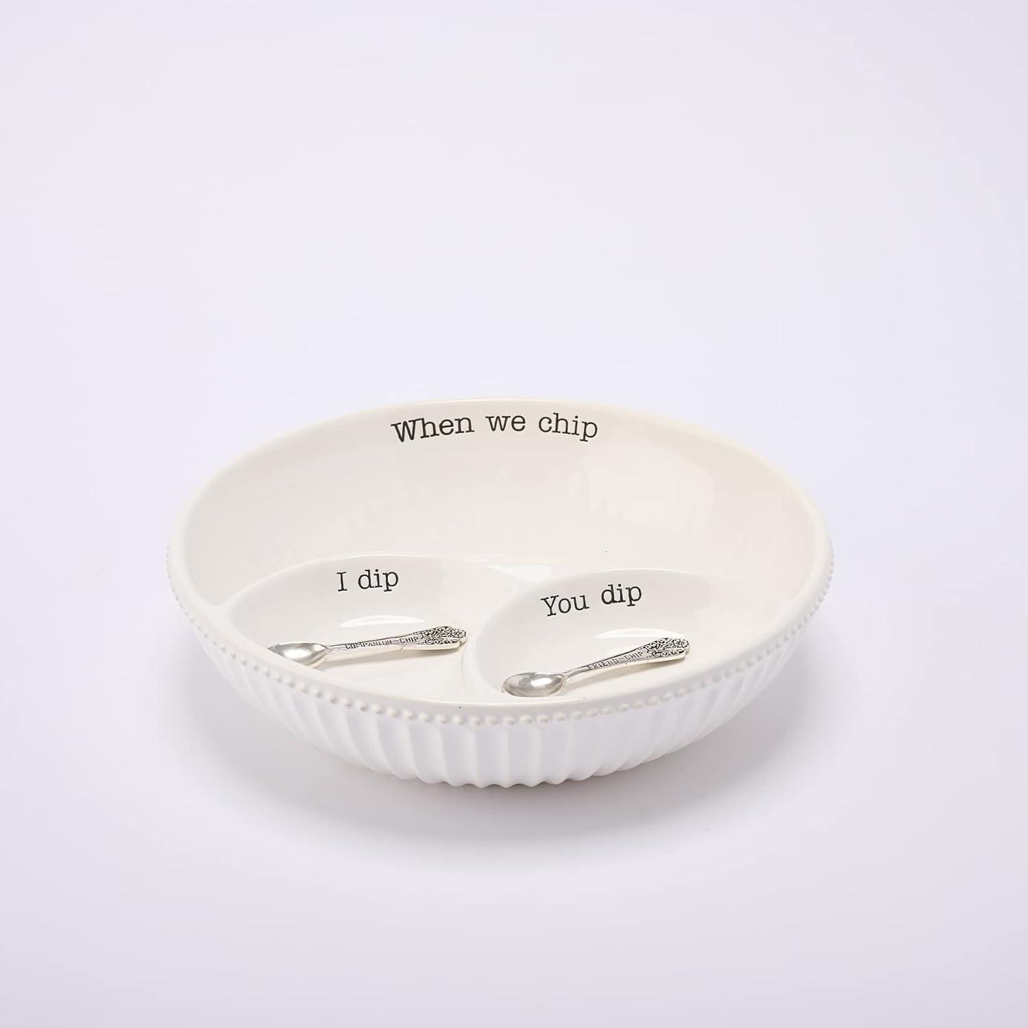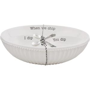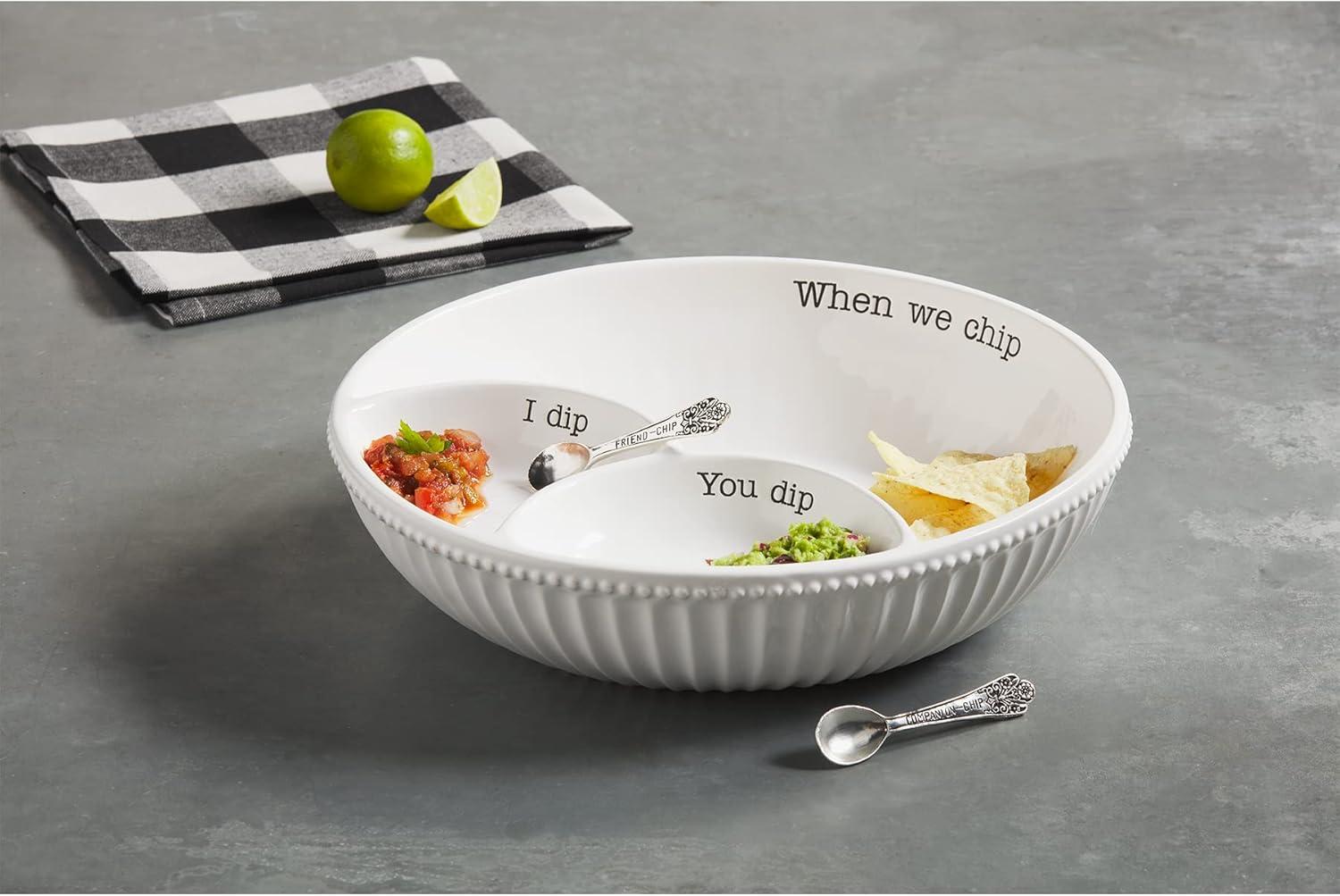 Mud Pie Circa Chip And Dip Bowl Set, White dish 3″ x 12″ dia | spoon 3 1/2″