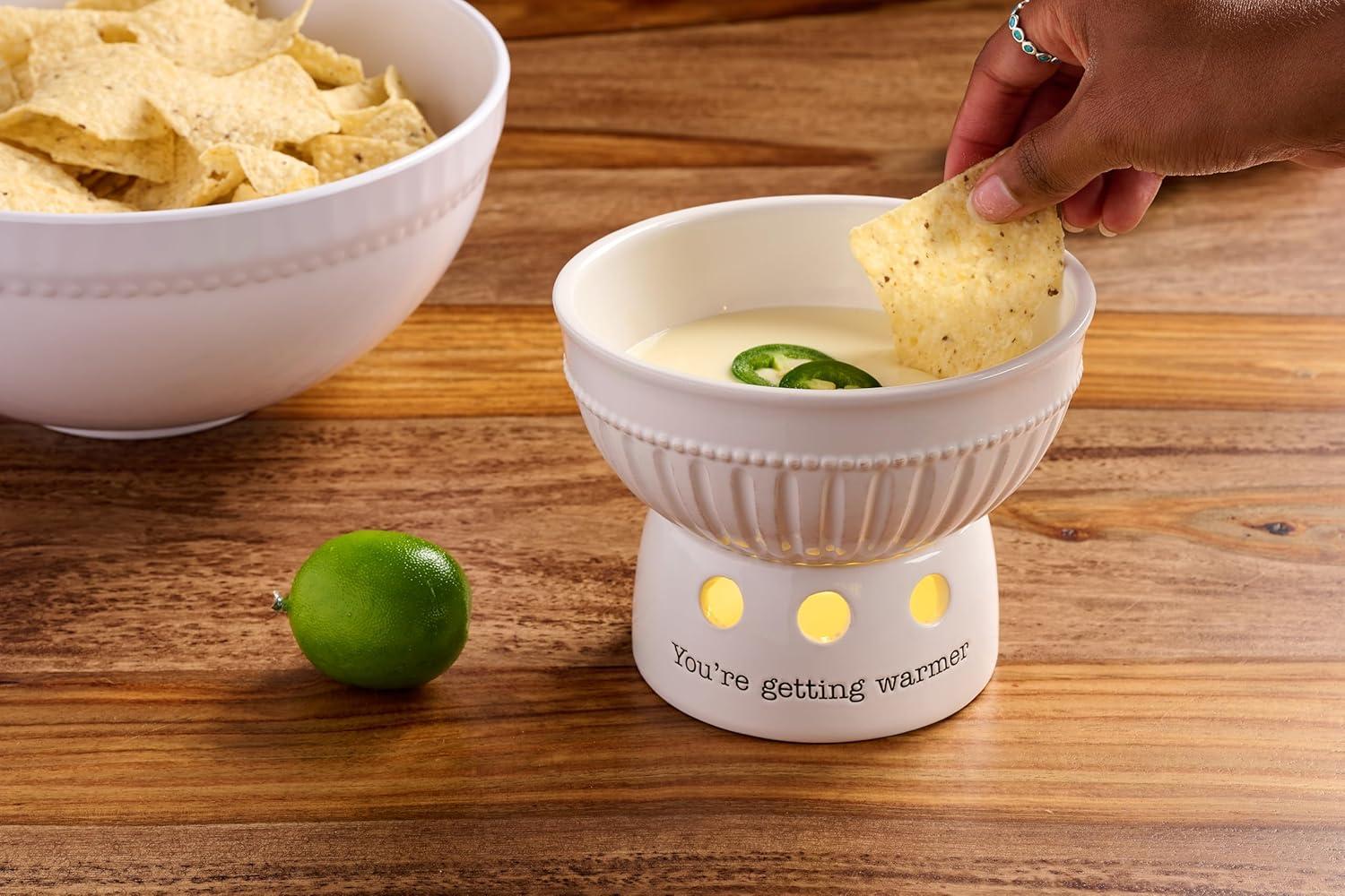 Mud Pie Circa Queso Cheese Dip Warming Stand, White, 4 1/2″ x 6″ dia