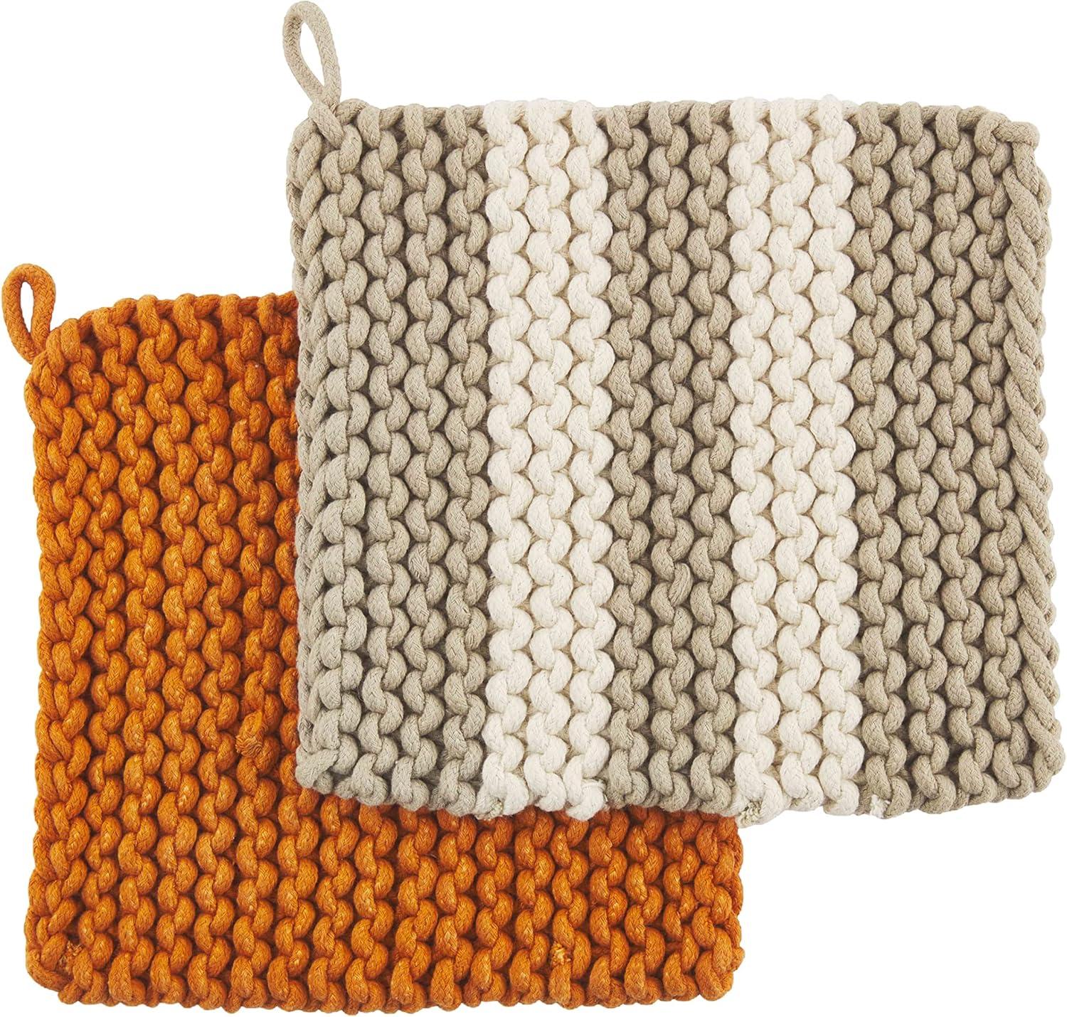 Mud Pie Crochet Pot Holder Set, Taupe 8″ x 8″