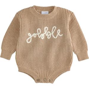 Mud Pie baby-boys Kids Thanksgiving Gobble Sweater Bubble(Khaki)