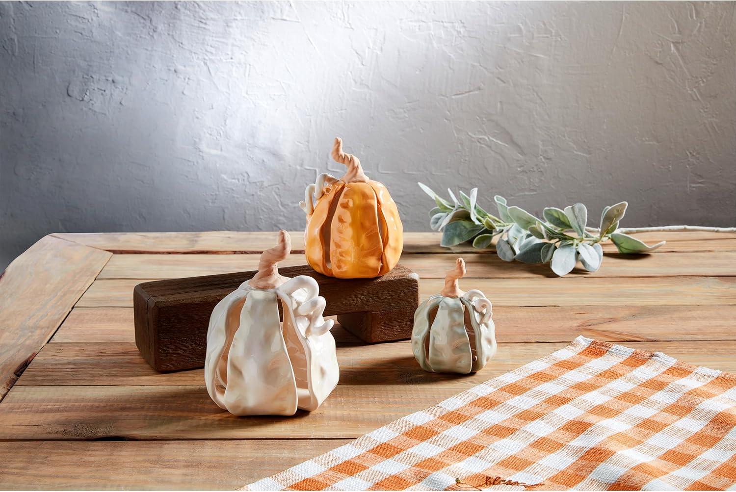 Mud Pie Ceramic Pumpkin Sitters, Medium, 4 3/4″ x 4 1/4″ Dia