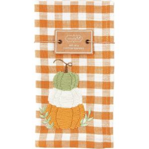 Mud Pie Embroidery Check Napkin, Rust, 18″ x 18″