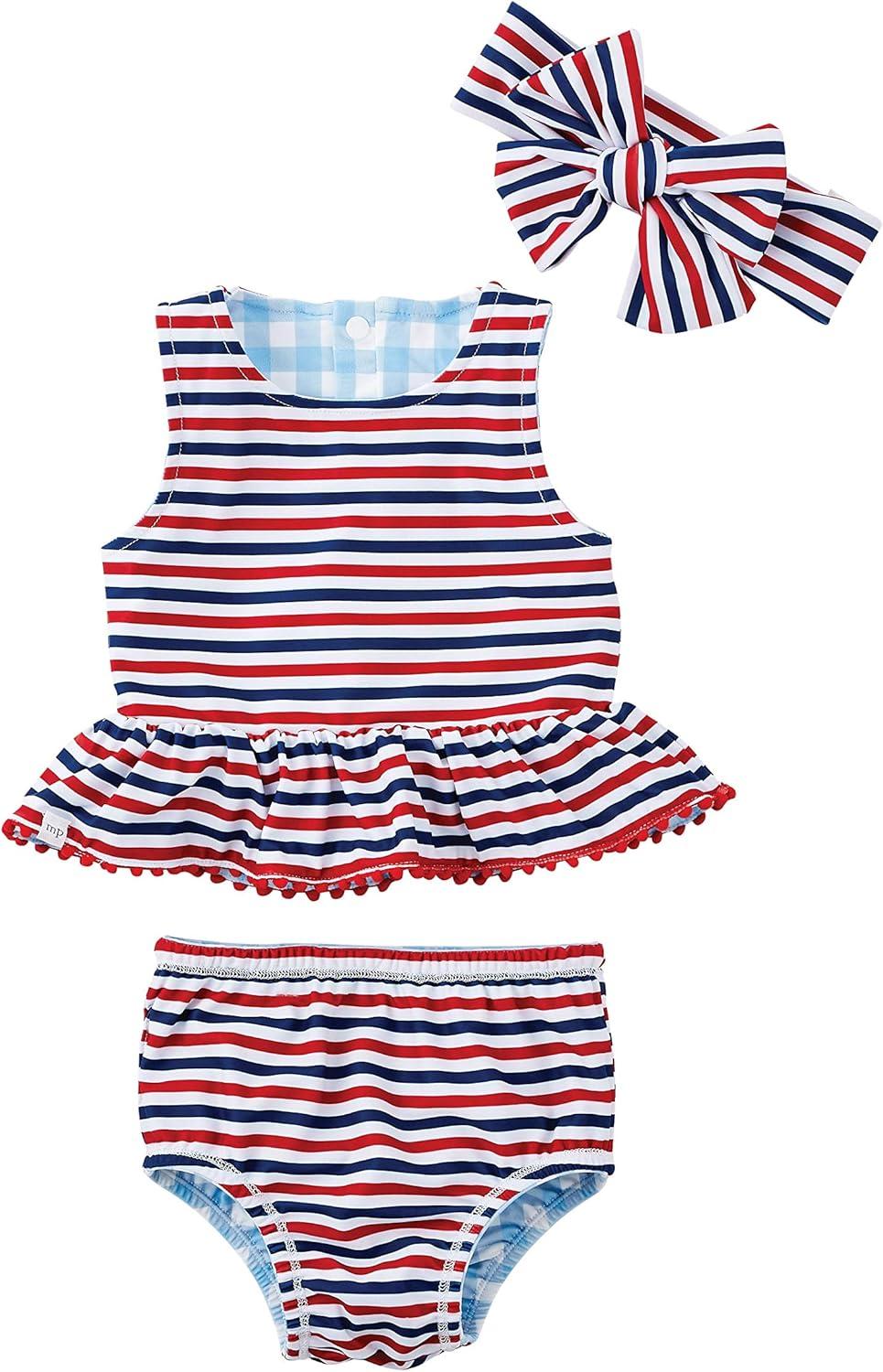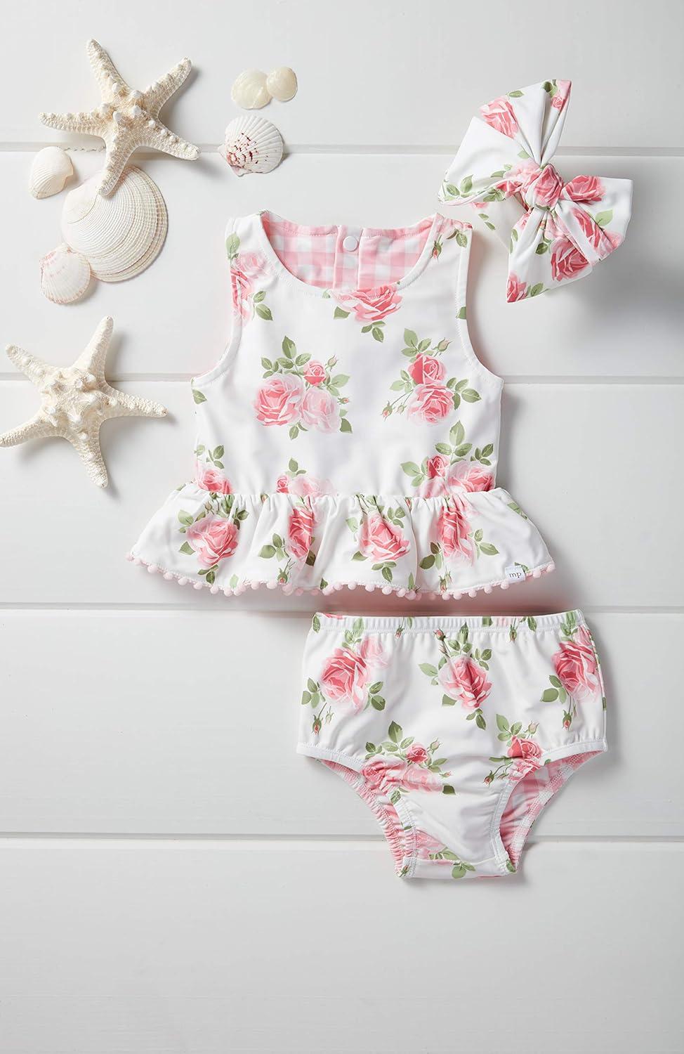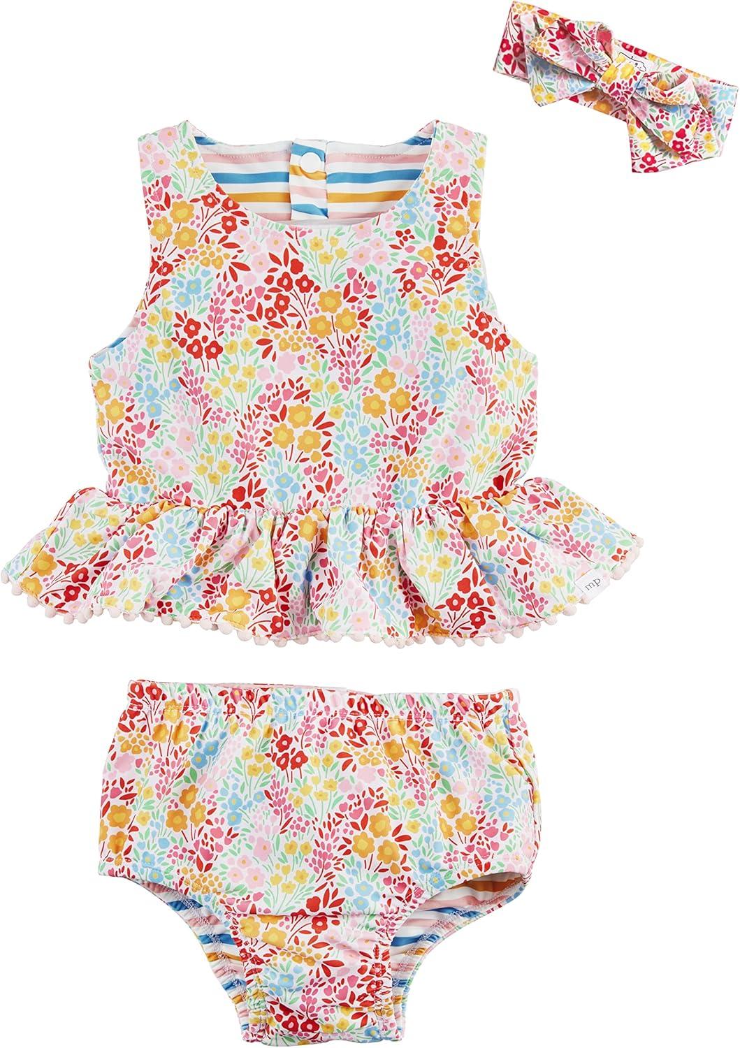 Mud Pie Girls Reversible Swimsuit & Headband Set(Floral/Stripe)