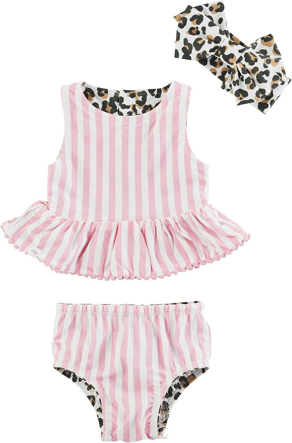 Mud Pie Girls Reversible Swimsuit & Headband Set(Pink)