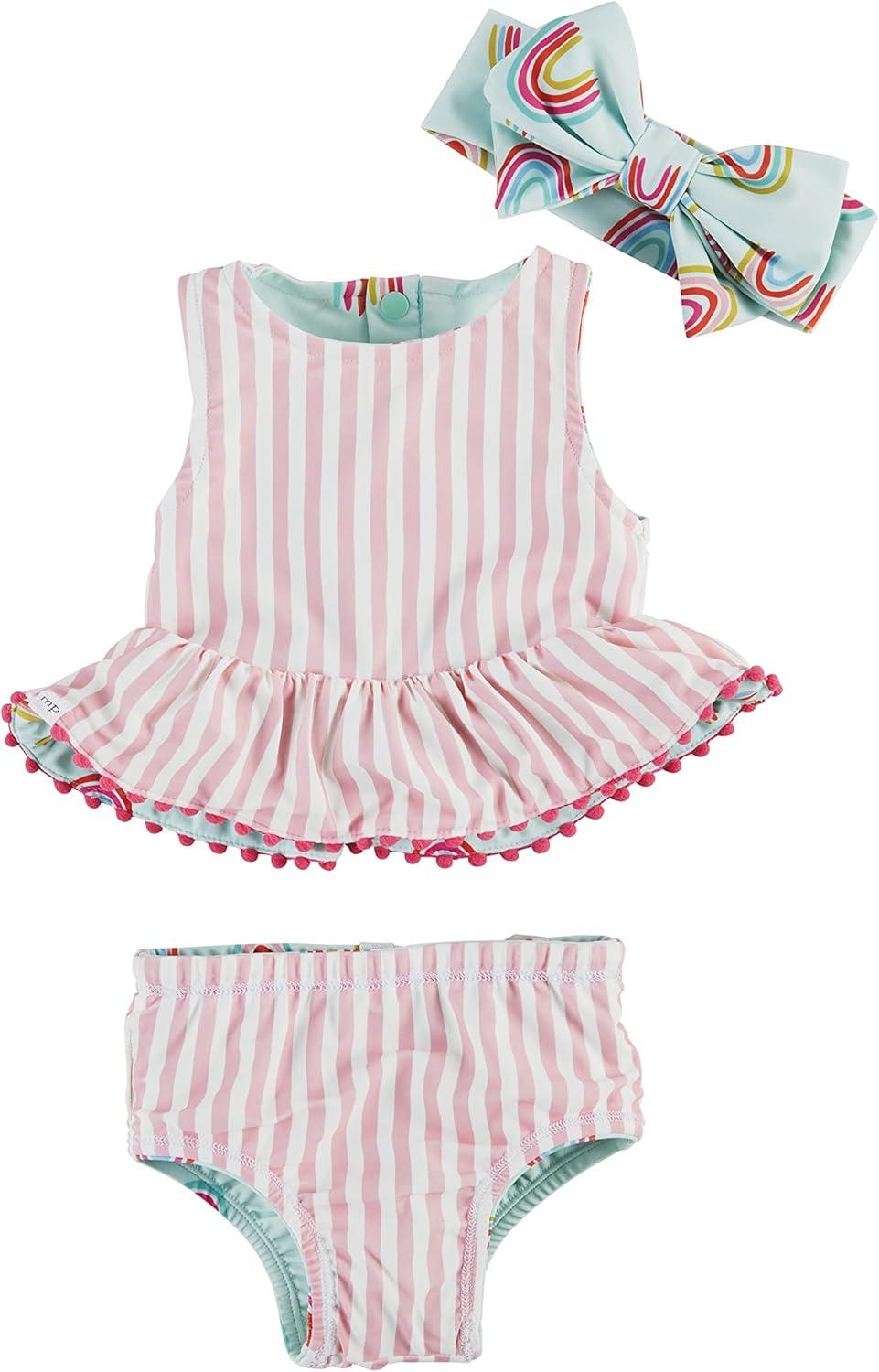 Mud Pie Girls Reversible Swimsuit & Headband Set(Rainbow)