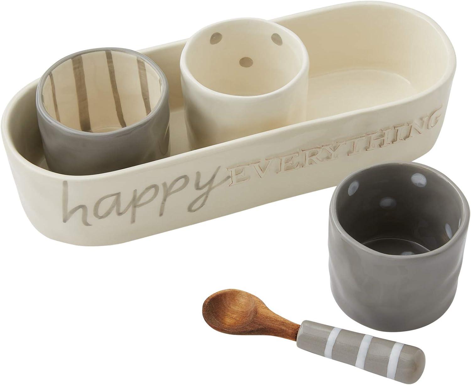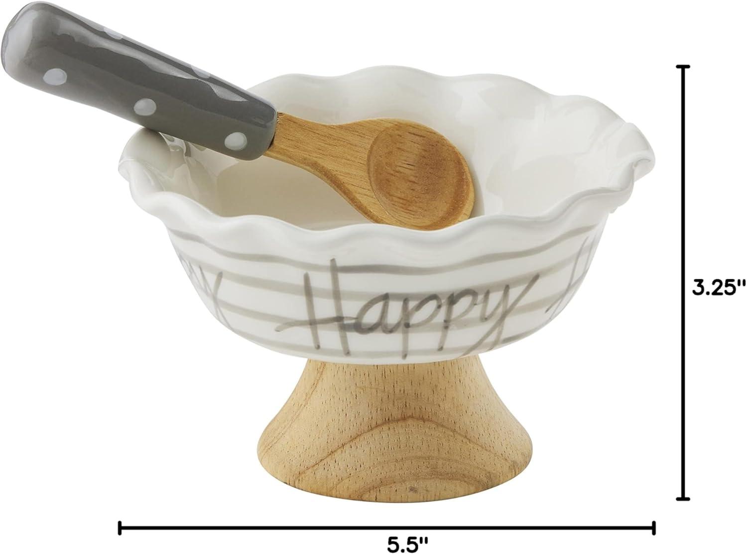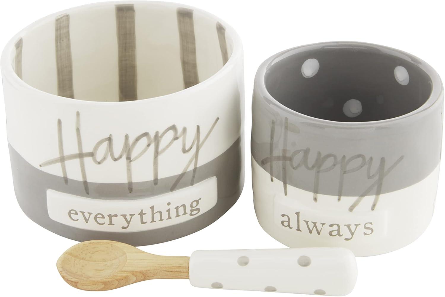 Mud Pie 3.25″ x 5.5″ Dia | Spoon 4.5″ Striped Happy Candy Dish Set, Gray, White
