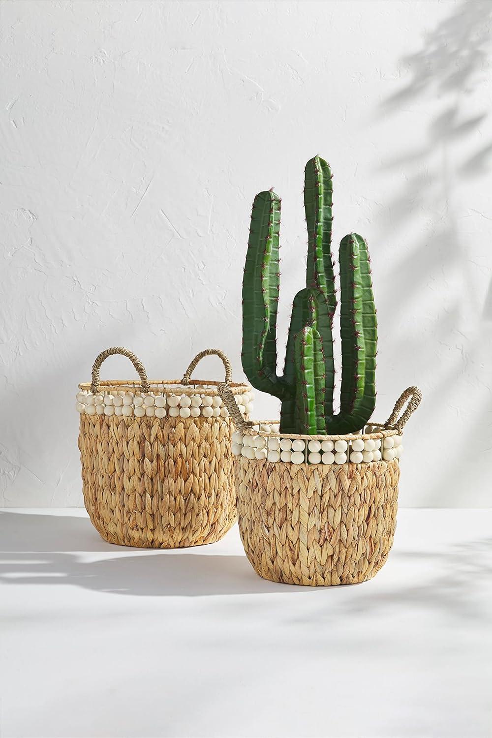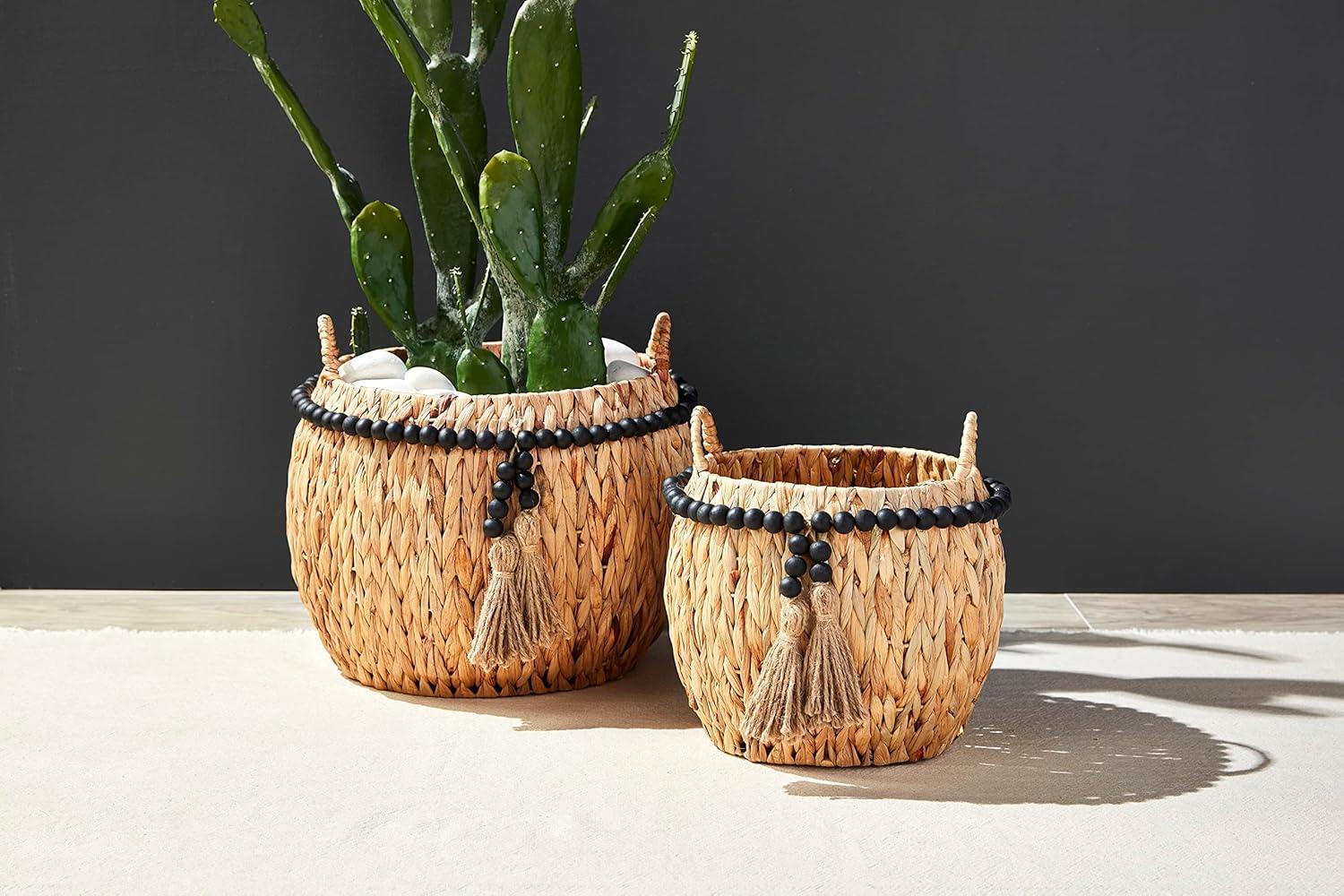 Mud Pie Beaded Hyacinth Basket Set, Brown