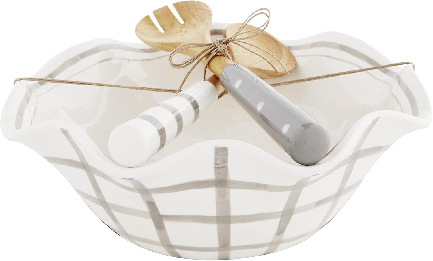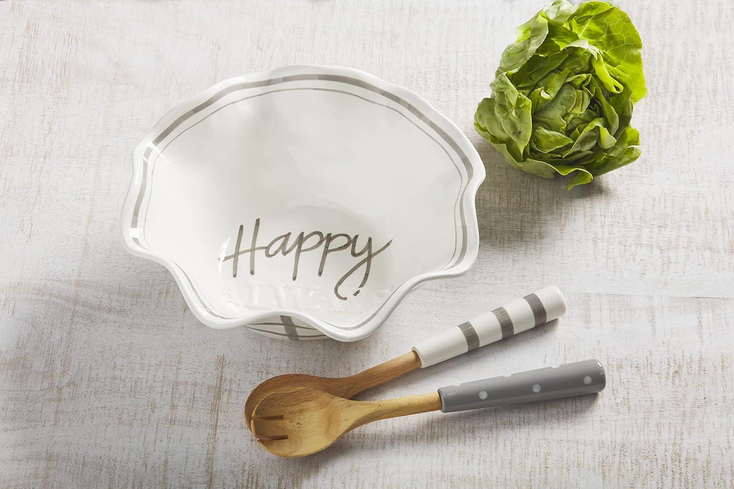 Mud Pie Happy Always Serving, White, 4.5″ x 12″, utensils 11 1/2″ | bowl 4 1/2″ x 12″ dia