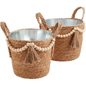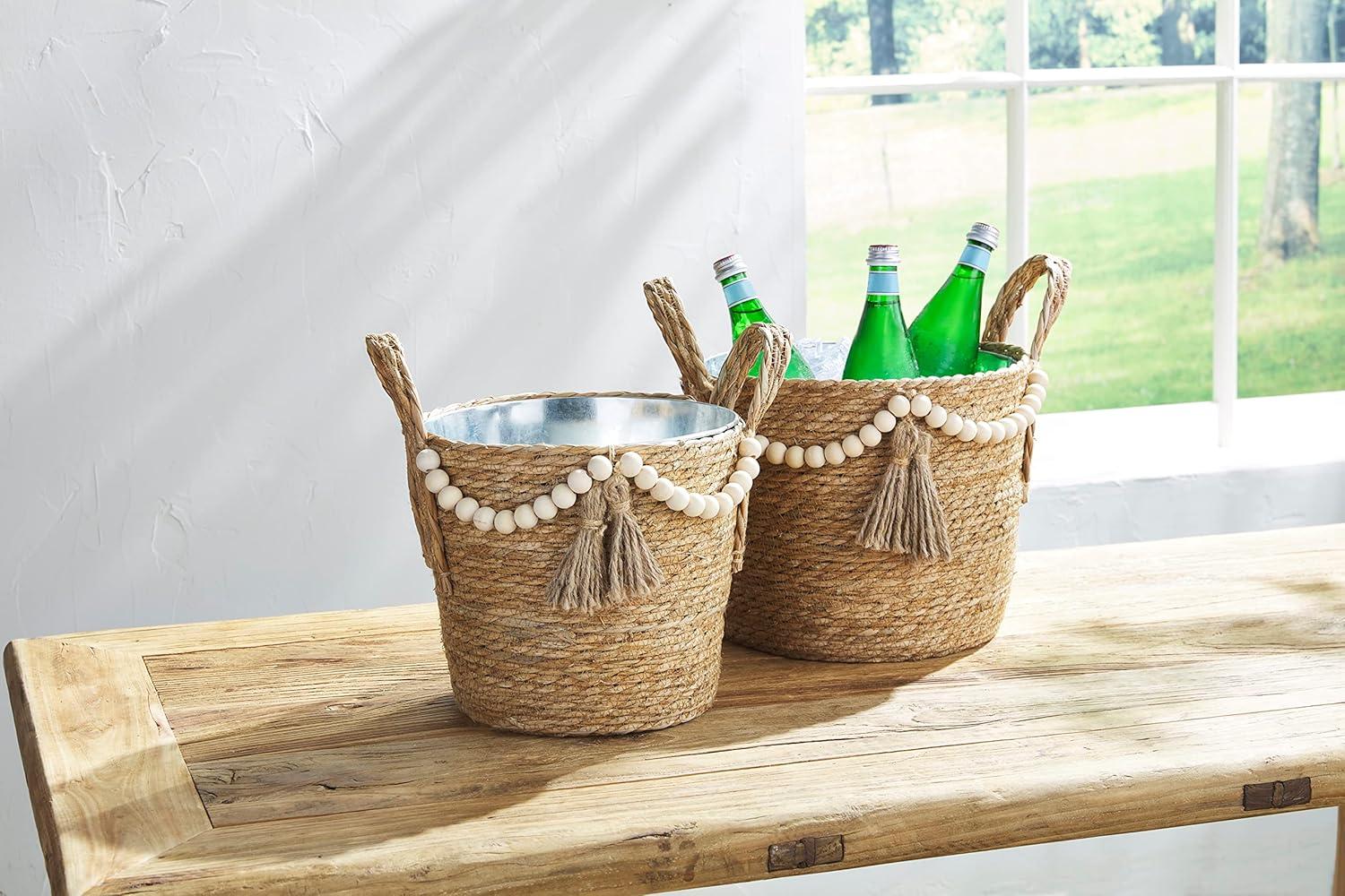 Mud Pie Hyacinth Beaded Party Tub, Small 9″ x 14 1/2″ | Large 10″ x 16″ Brown