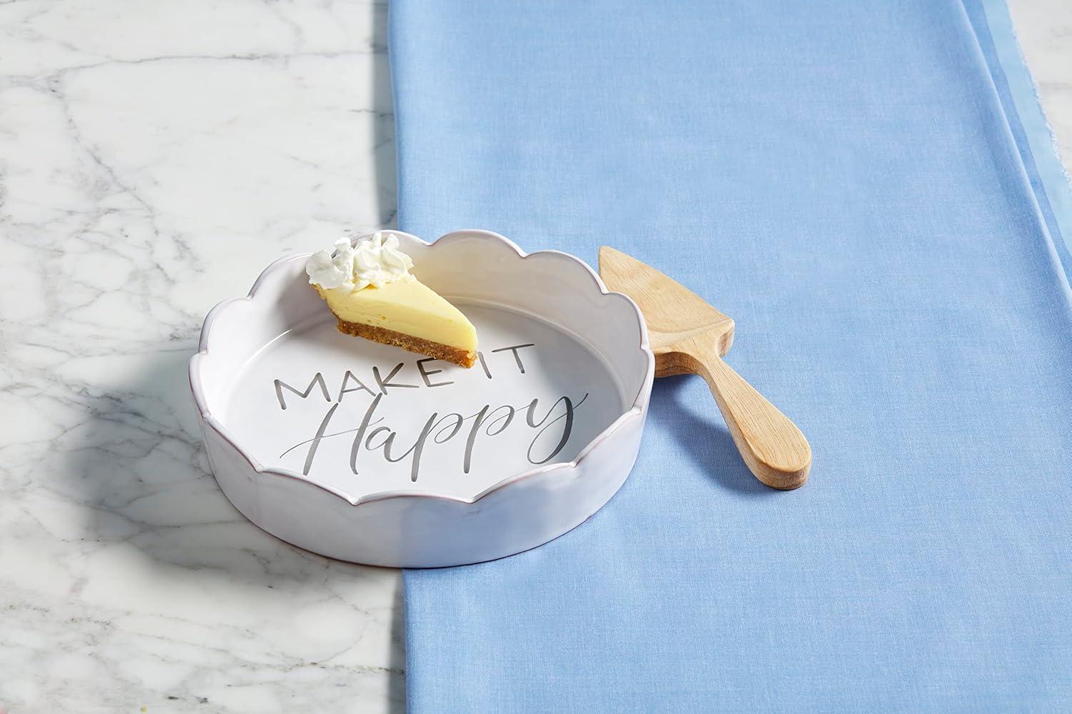 Mud Pie Make It Happy Pie Plate, White, 9″ dia