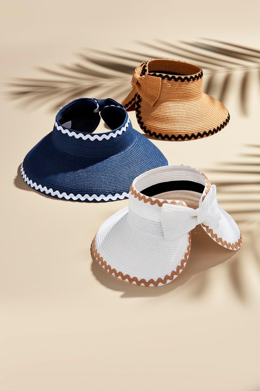 Mud Pie Women’s Collapsible Straw Hat(White)