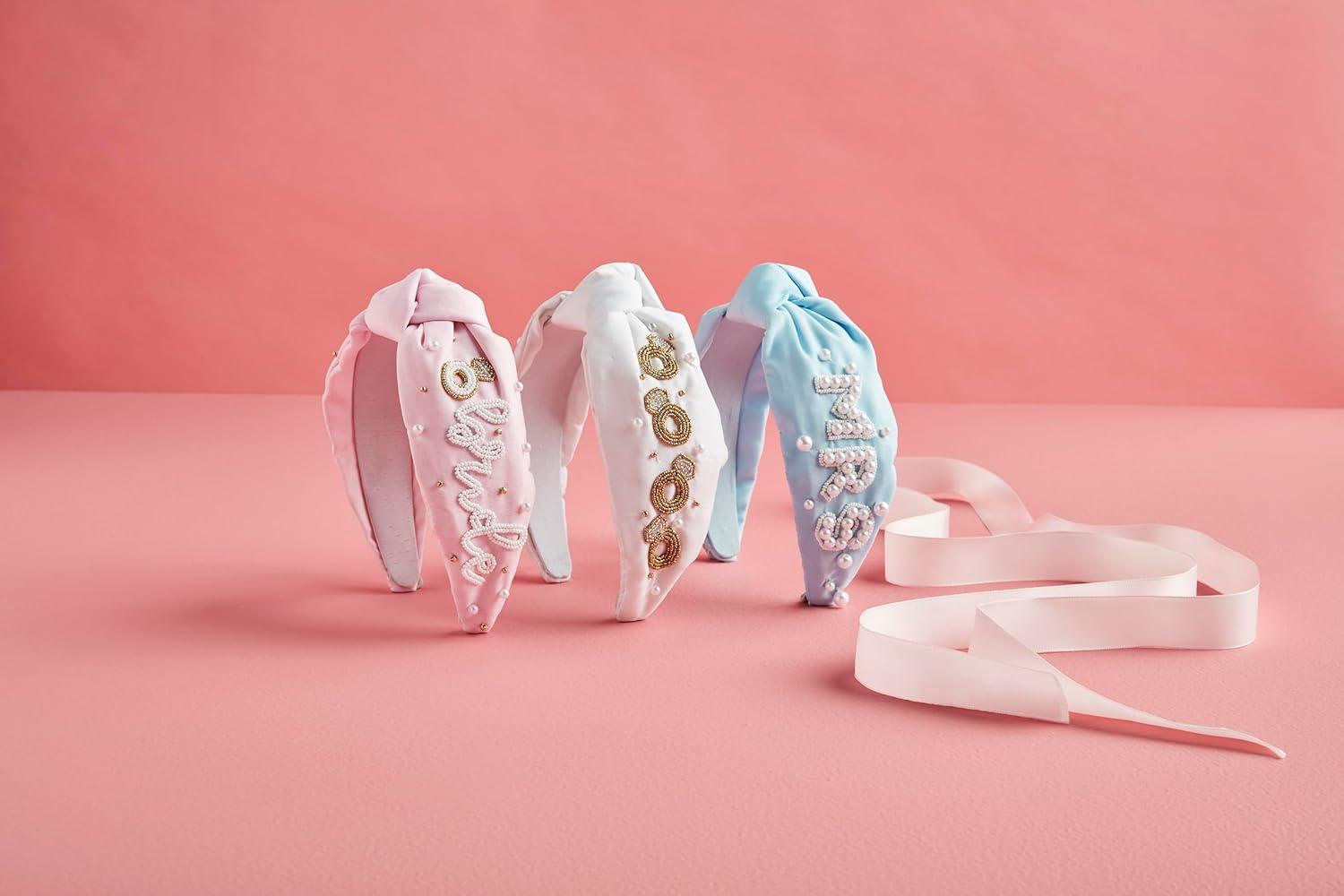 Mud Pie Women’s Bride Beaded Headband, Outer Width 3″ | Knot Height 1 1/4″ Pink