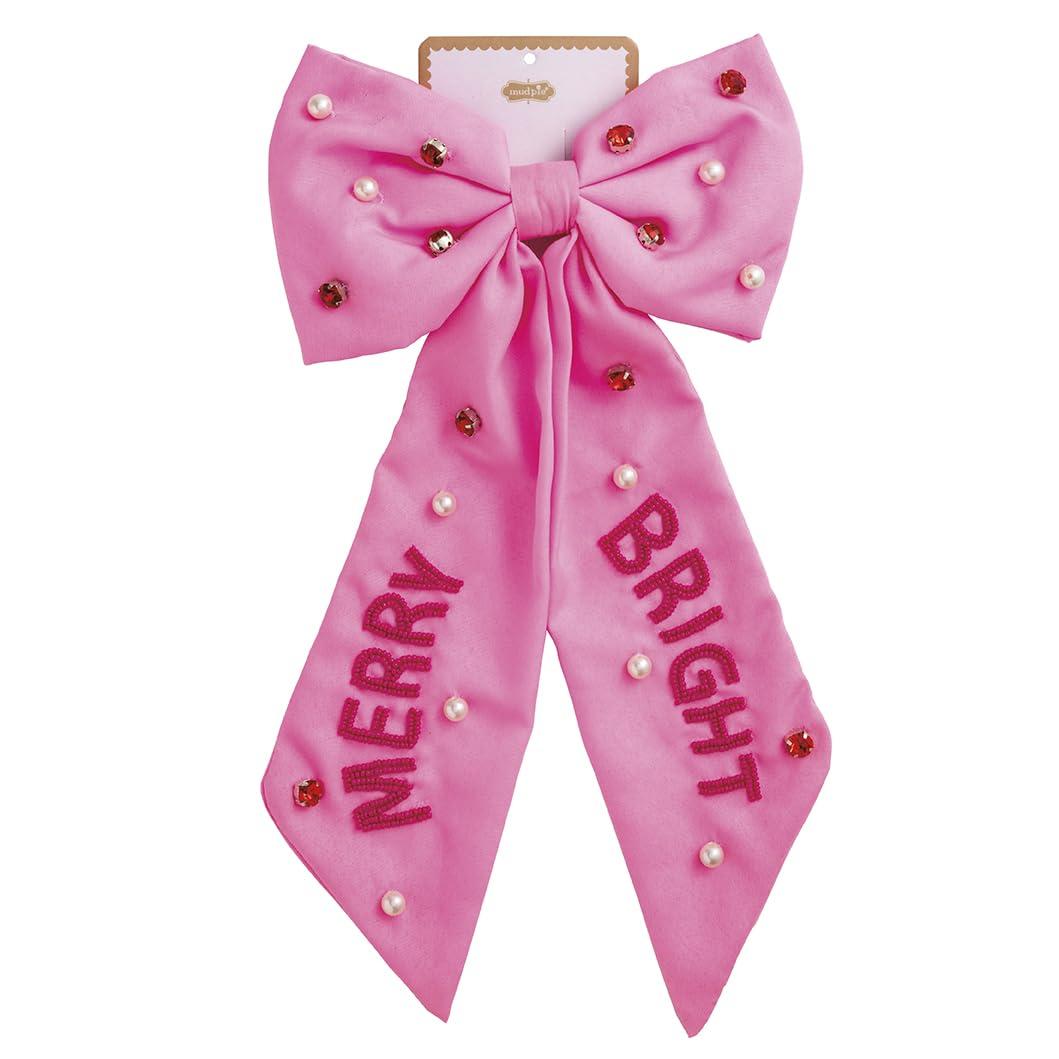 Mud Pie Women’s Holiday Hair Bow, Pink, 13″ x 6 1/2″