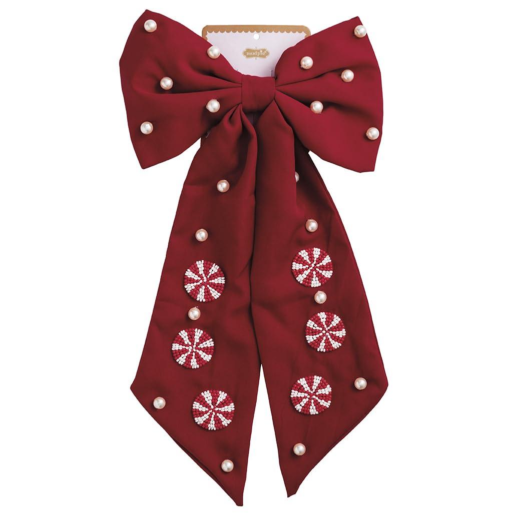 Mud Pie Women’s Holiday Hair Bow, RED, 13″ x 6 1/2″