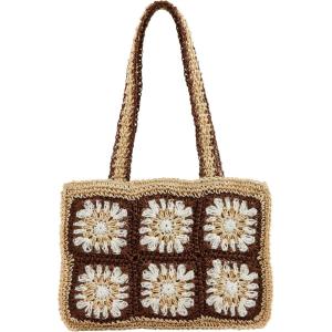 Mud Pie Women’s Floral Crochet Mini Tote(Brown)