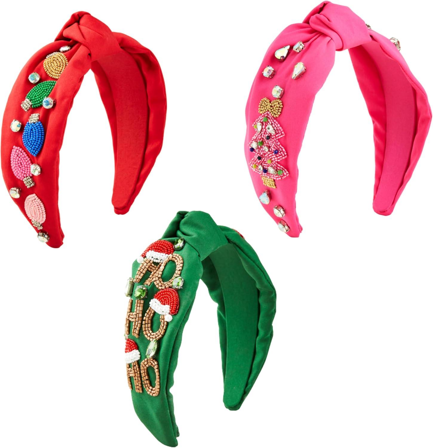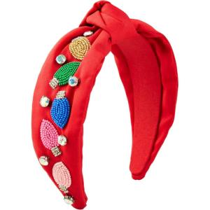 • Mud Pie Women Holiday Beaded Headband, Red, outer width 3″ | knot height 1 1/4″