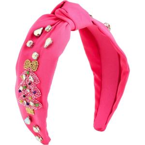 • Mud Pie Women Holiday Beaded Headband, Pink, outer width 3″ | knot height 1 1/4″