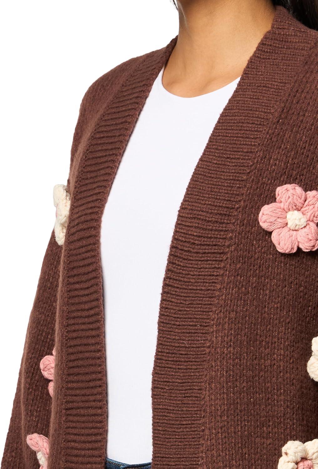 Mud Pie Women’s Dianne Flower Icon Cardigan, Brown