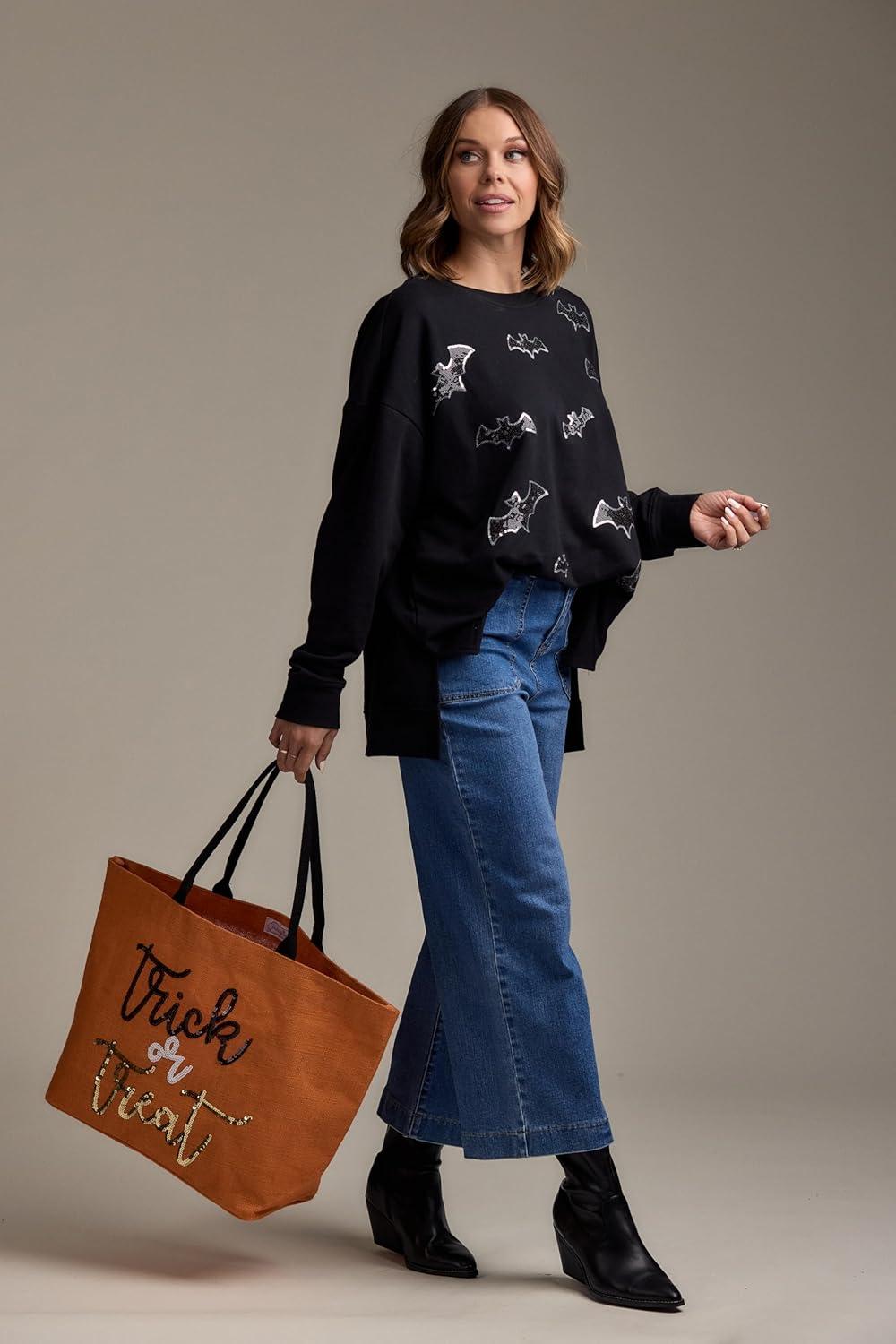 Mud Pie Women’s Halloween Sparkle Tote, Trick or Treat
