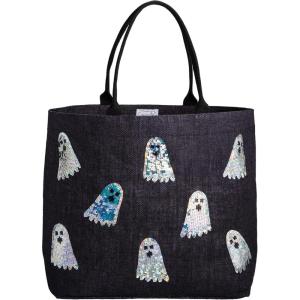 Mud Pie Women’s Halloween Sparkle Tote, Ghosts
