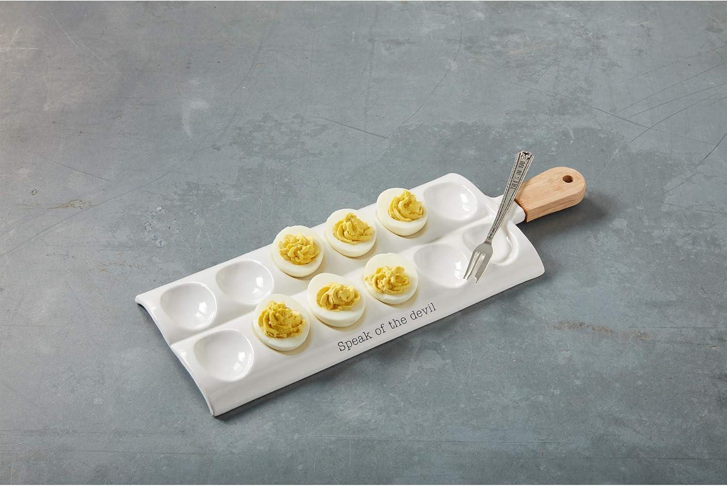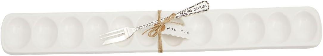 Mud Pie Deviled Egg Paddle Tray, 5 1/2″ x 15 1/2″ | Fork 7″, White(Egg Tray)