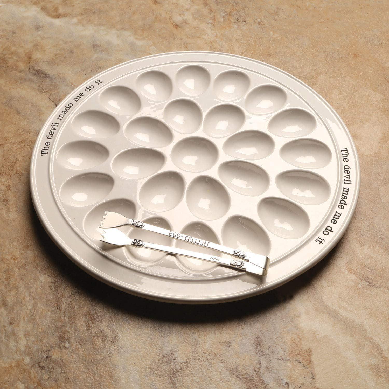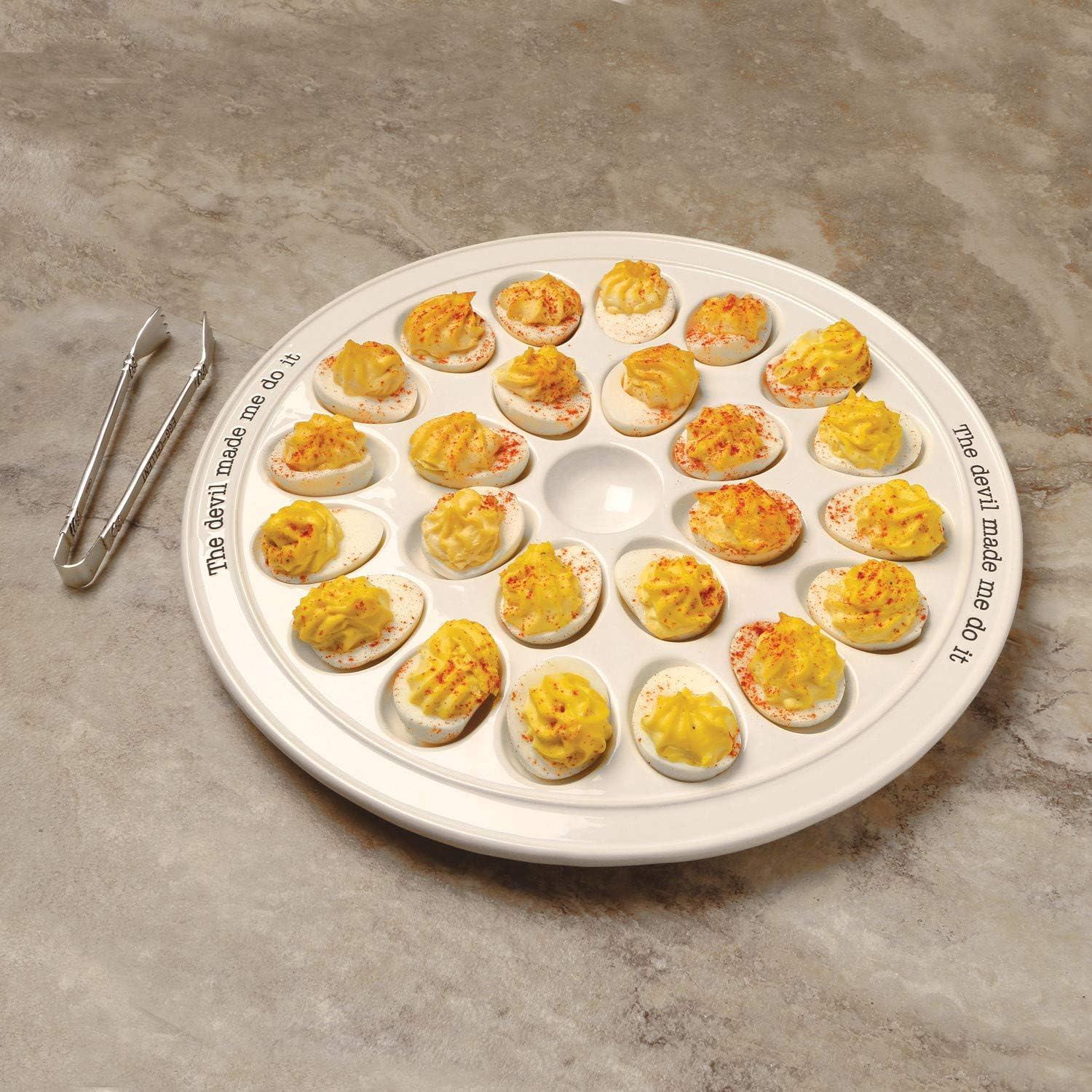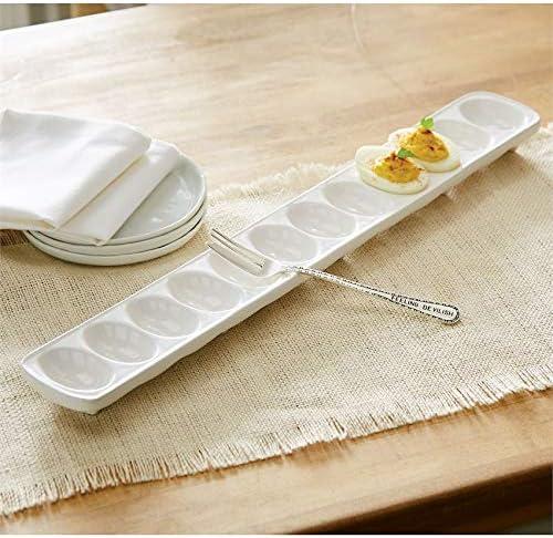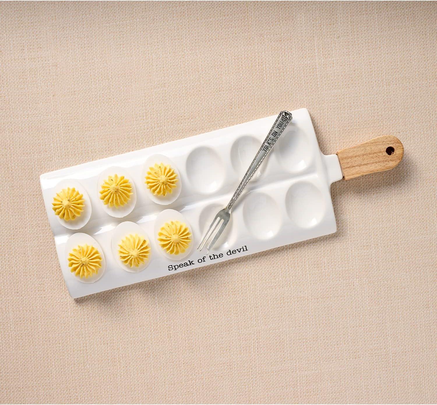 Mud Pie Deviled Egg Paddle Tray, 5 1/2″ x 15 1/2″ | Fork 7″, White(Round Egg Plate)