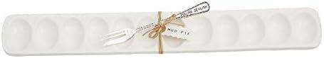 Mud Pie Deviled Egg Paddle Tray, 5 1/2″ x 15 1/2″ | Fork 7″, White(Oyster Platter)