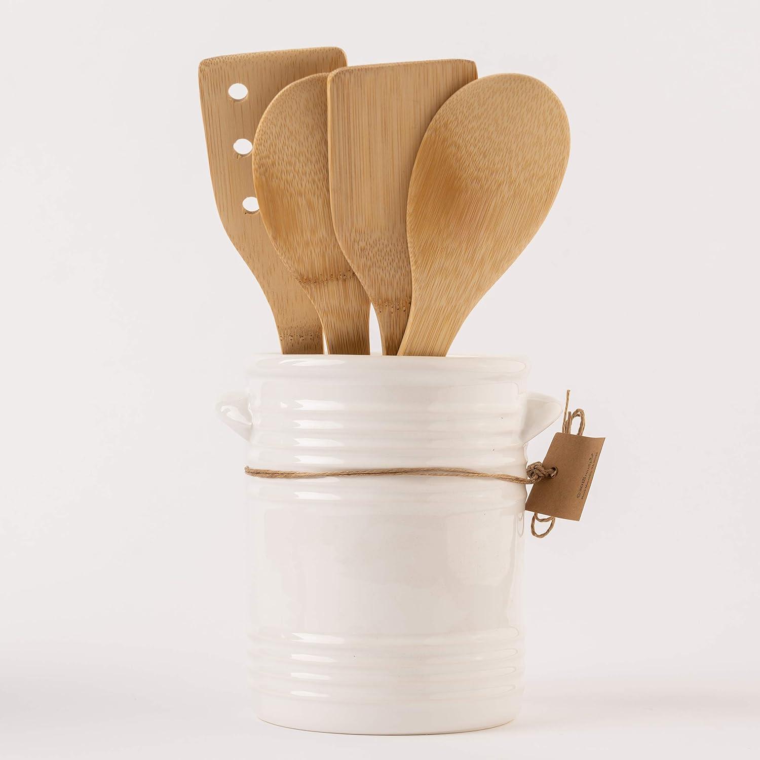 Each utensil measures 11″, Ceramic Utensil Holder measures 6.5″ x 7″.