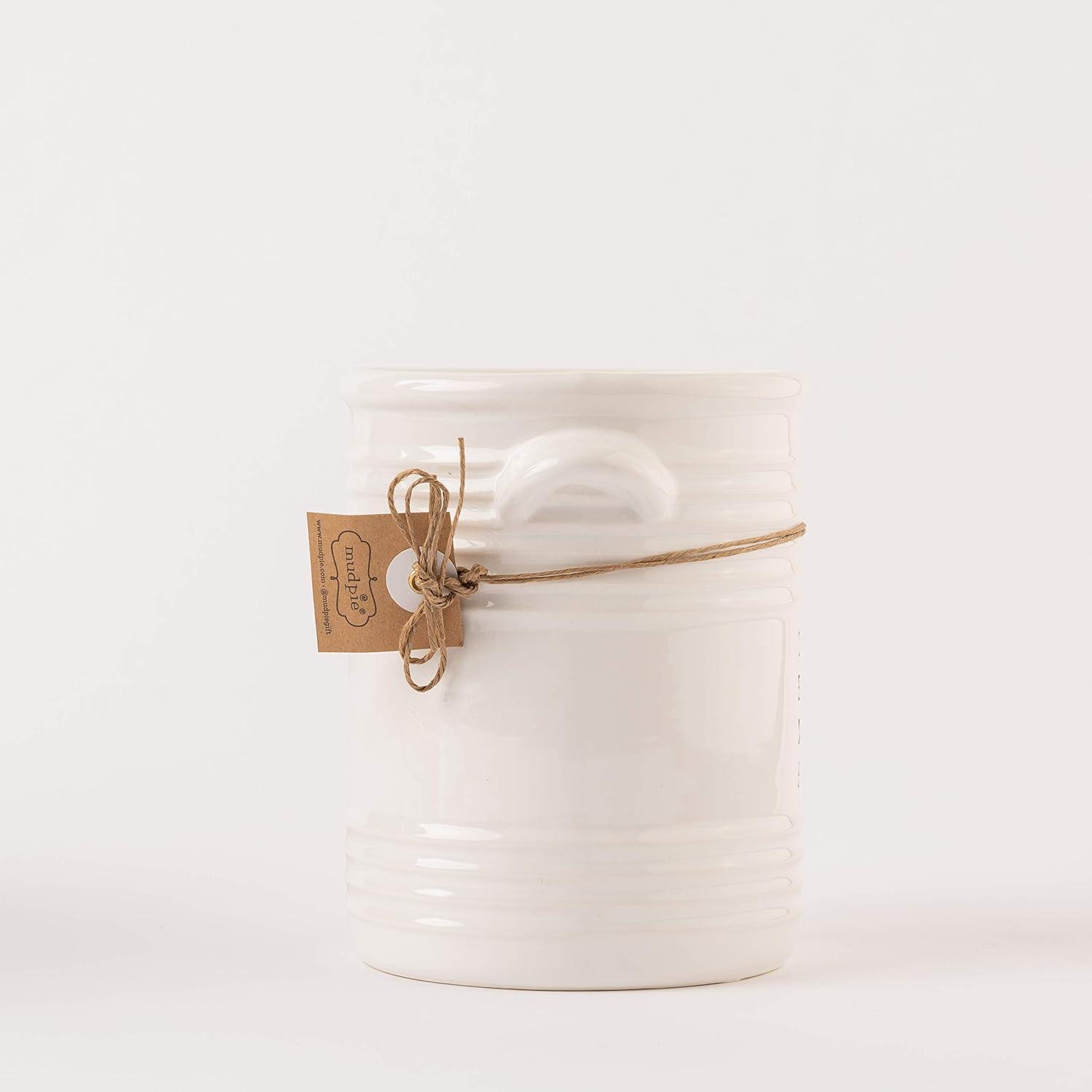 Take some whisks and purchase our pitcher utensil holder. The three piece set comes with a debossed sentiment ceramic pitcher-style crock that reads “Take some whisks”. The holder holds two wooden cooking utensils. The utensil holder is made from dolomite, while the utensils are made of wood.