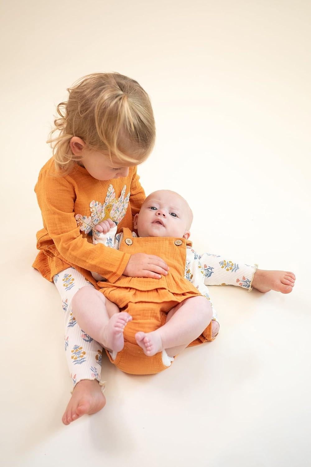 Get ready to sit at the kid's table with our Girl's Turkey Tunic and Legging Set. The two piece set comes with an appliquéd cotton gauze tunic. The tunic features a peplum waist. The center of the tunic features a detailed turkey image. The tunic comes with cotton rib leggings. The leggings feature a Fall floral pattern. The tunic is made from 100% cotton. The leggings are made of 50% Rayon 44% Cotton and 6% Spandex. To wash, turn inside out and machine wash on cold with like colors. To dry, tumble dry on low.