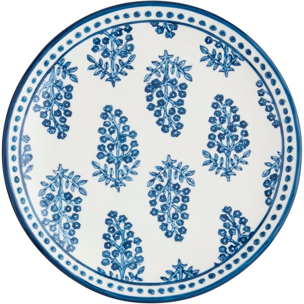 The Blooms Print Salad Plate Features A Charming Hand-Stamped Design That Adds A Touch Of Elegance To Any Table Setting. Its Hand-Painted Rim Detail Enhances The Overall Aesthetic, Making It A Delightful Addition To Your Dinnerware Collection. Crafted From Durable Stoneware, This Plate Is Both Dishwasher And Microwave Safe, Ensuring Convenience And Ease Of Use. Perfect For Serving Salads Or Appetizers, It Combines Functionality With Artistic Flair.