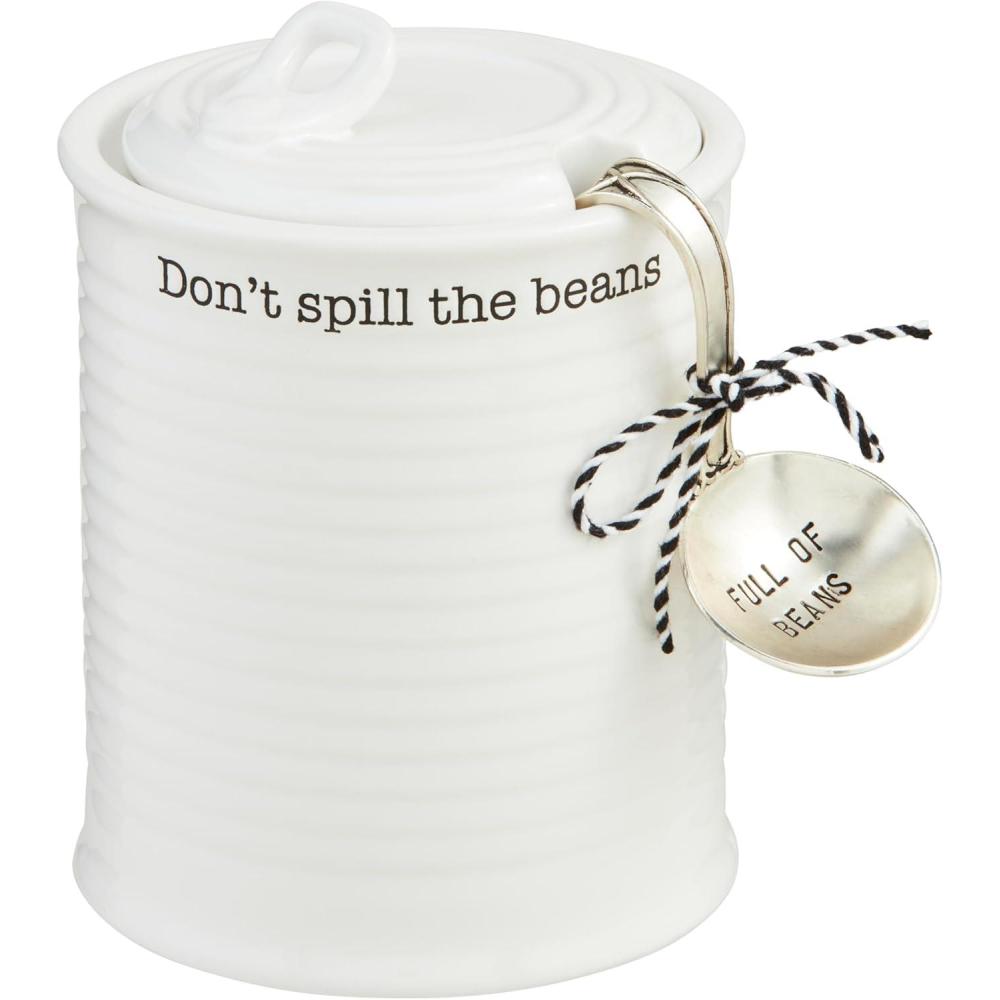 Mud Pie Ceramic Baked Bean Can Set; can 5 1/4″ x 5 1/2″ | ladle 6″