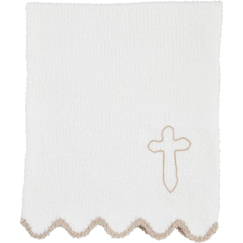 Mud Pie Children’s Pink Scallop Chenille Blanket(White/Cross Embroidery)