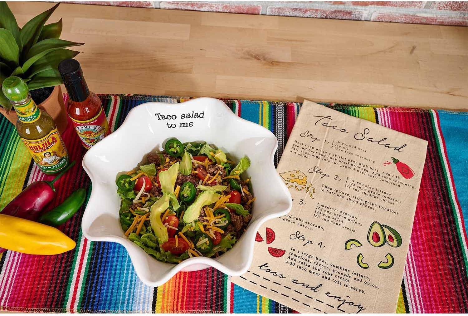 Elevate your Taco Tuesday night with Mud Pie's Taco Salad Bowl and Towel Set.
