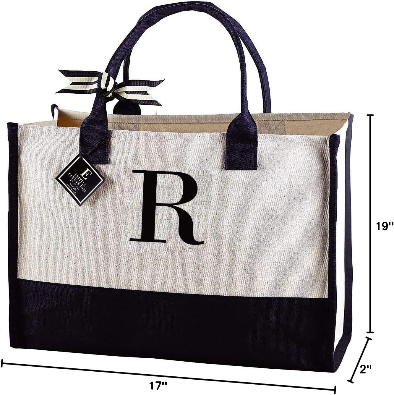Mud Pie Classic Black and White Initial Canvas Tote Bags (D), 100% Cotton, 17″ x 19″ x 2″(R)