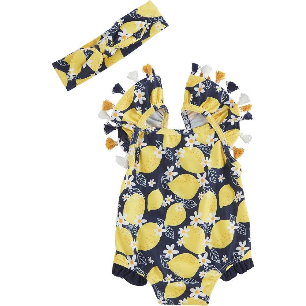 Mud Pie Girls Baby One Piece Swimsuit and Headband Set(Lemon)