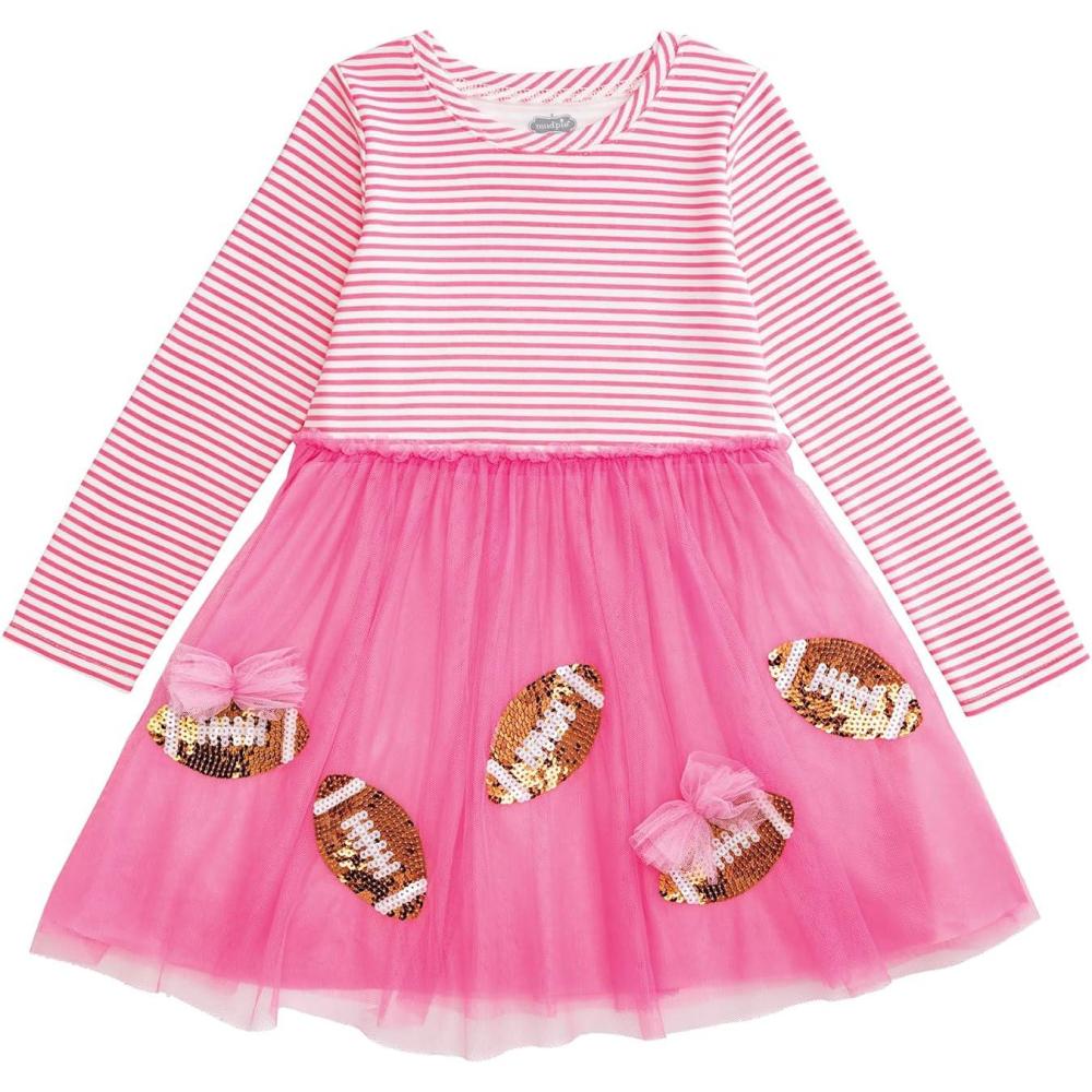 Mud Pie Girls Girls Sequin Football Tutu Dress(Pink)