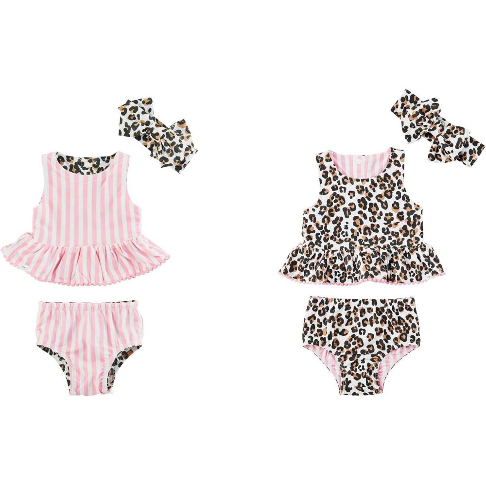 Mud Pie Girls Reversible Swimsuit & Headband Set(Leopard)