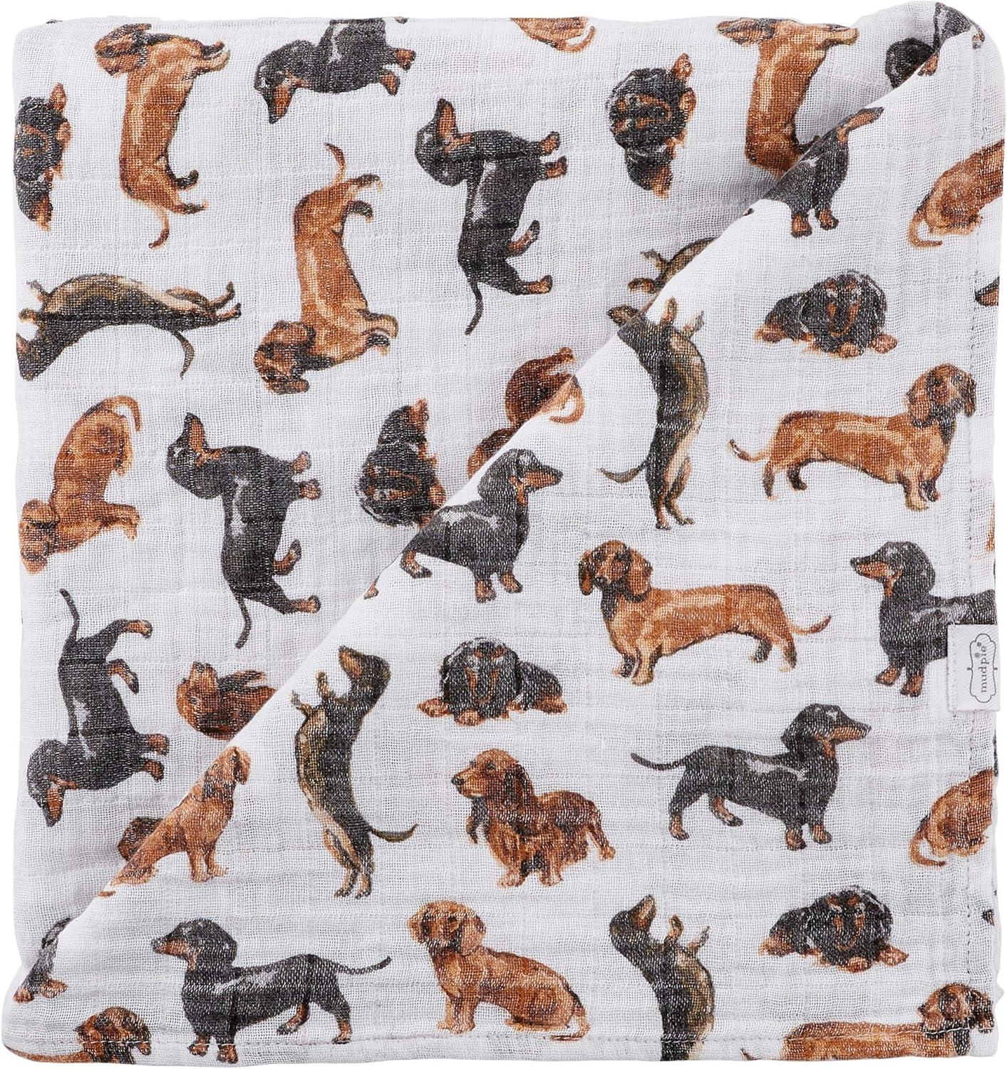 Mud Pie Golden Retriever Print Muslin Baby Swaddle Blanket, 47″ x 47″(Dachshund)
