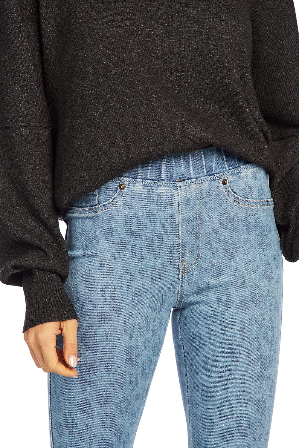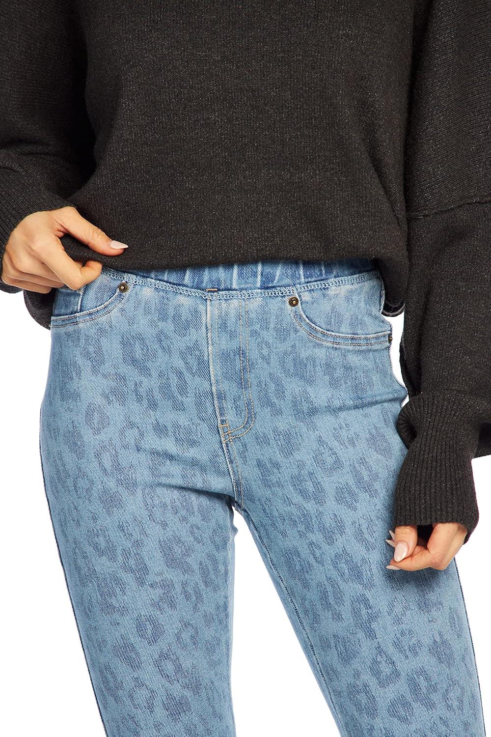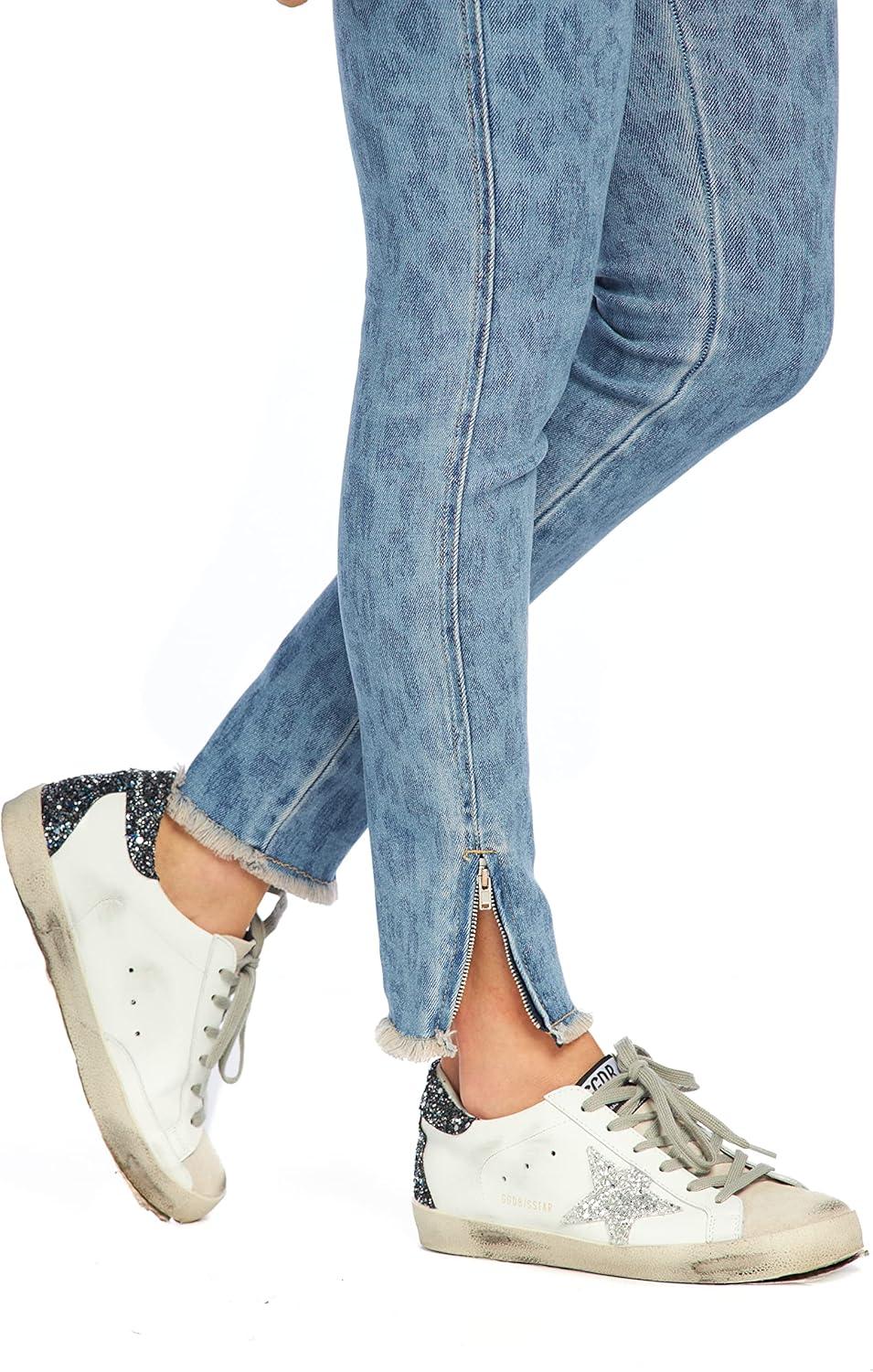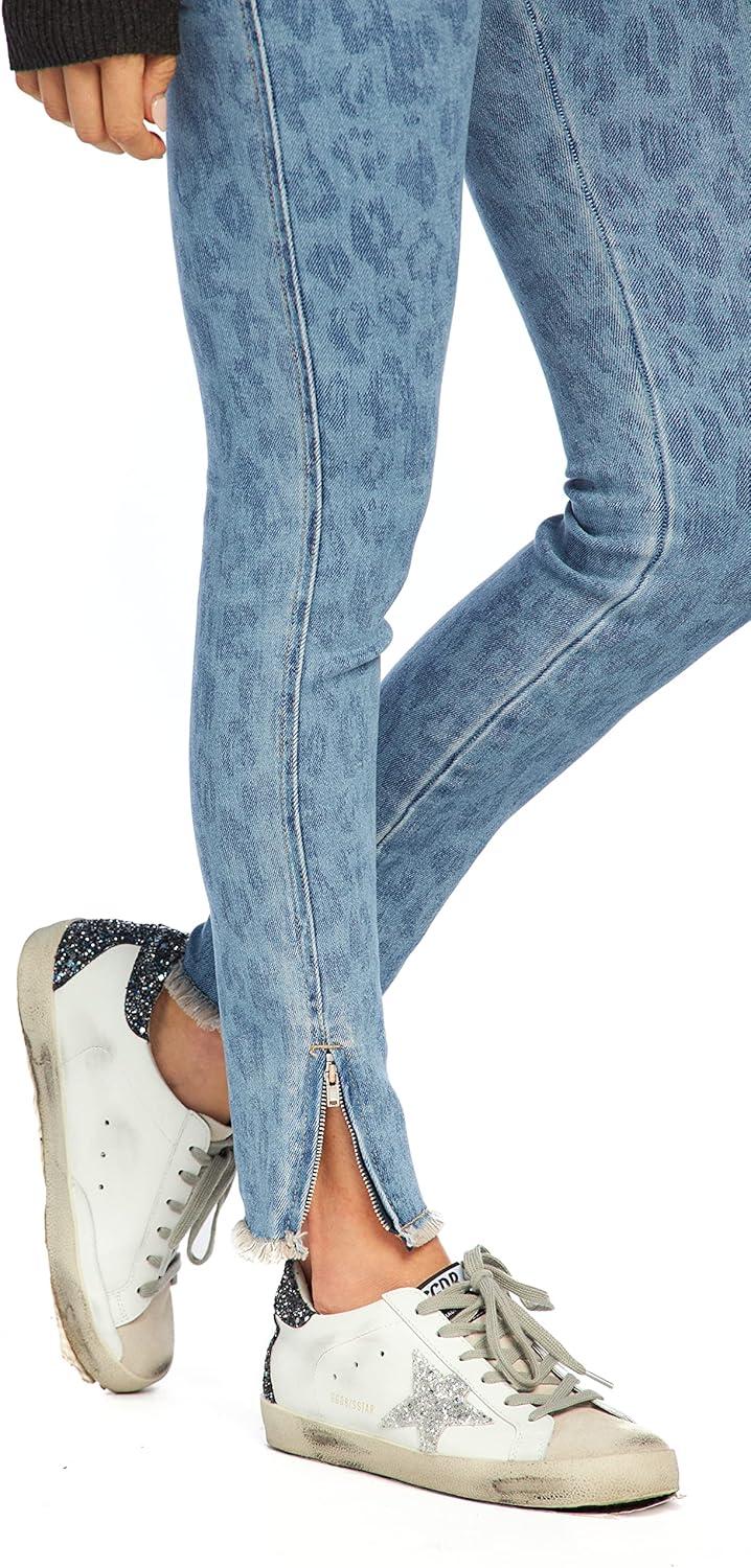 Mud Pie Jetta Zipper Womens Jeans, Large, Blue Leopard(Blue)