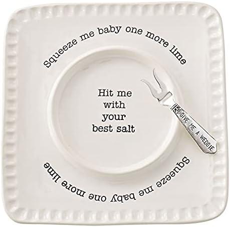 This Margarita Gift Box Set comes with a salt and lime ceramic mowing plate, a lime fork and two margarita glasses.