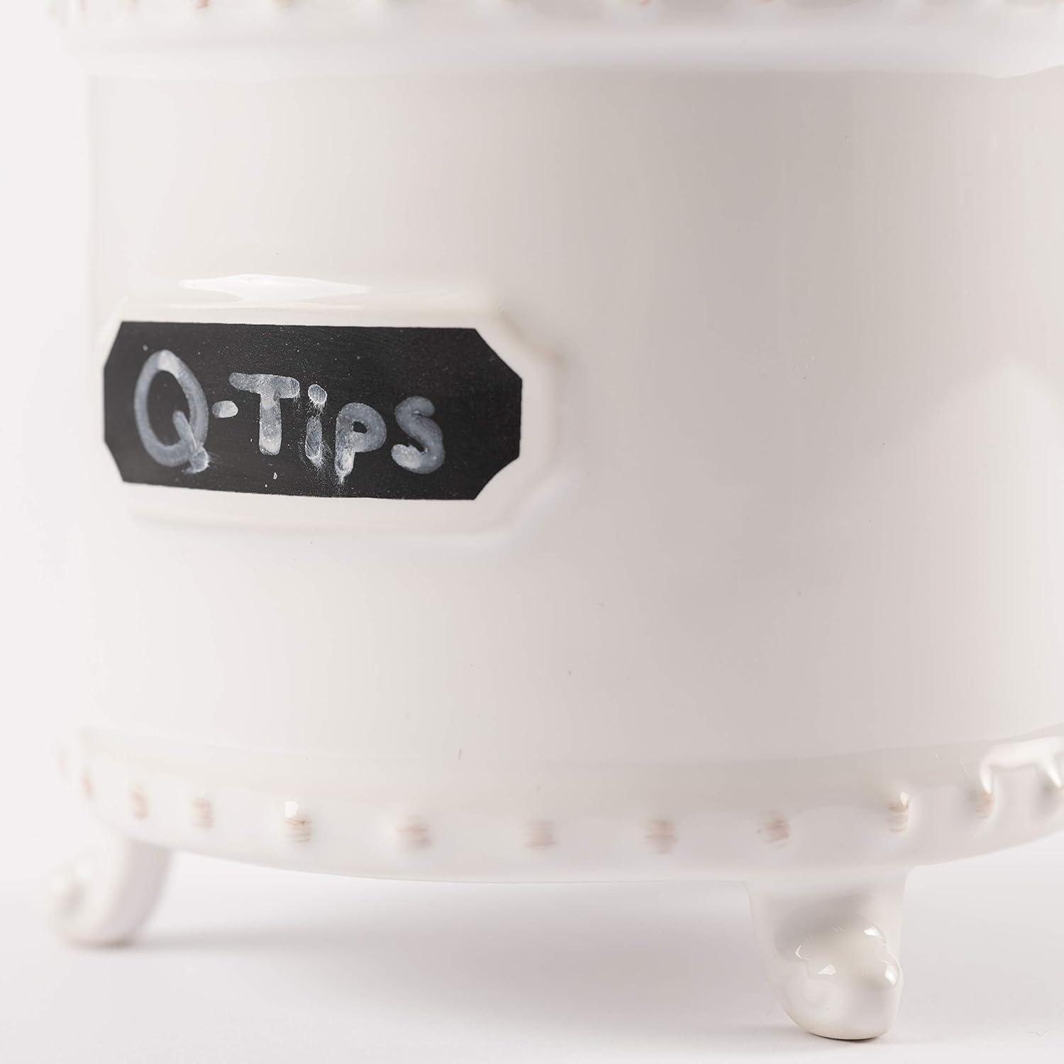 This unique small bath canister is perfect for bathroom storage. The circa canister features a beautiful white color. The canister features a chalkboard material at the front, making it perfect for personalization. This canister set would be perfect for storing bathroom essentials like cotton balls, q tips, and more. This set does not include chalk.