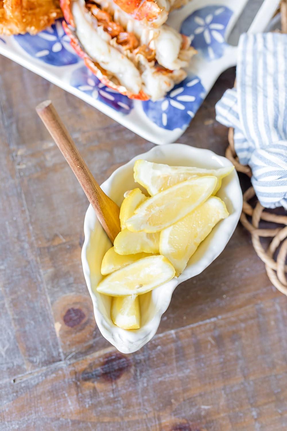 2-piece set. Life-like stoneware oyster dip bowl arrives with metal and driftwood spoon.